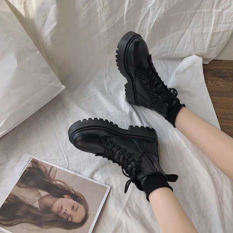 Модные популярные осенние новые корейские модные красивые шнурованные мотоциклетные ботинки сетчатые красные повседневные ботинки с круглым носком на толстой подошве для женщин990