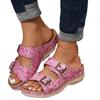 Мода 2024 года, модные летние женские тапочки с закрытым носком, летняя обувь, удобные женские сандалии на танкетке с двойной пряжкой, повседневные тапочки на платформе