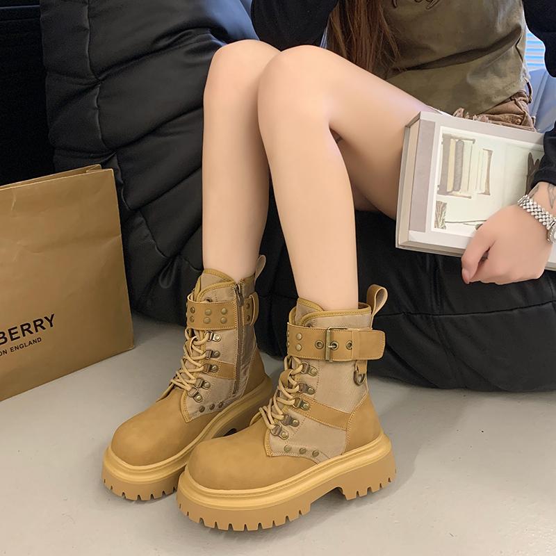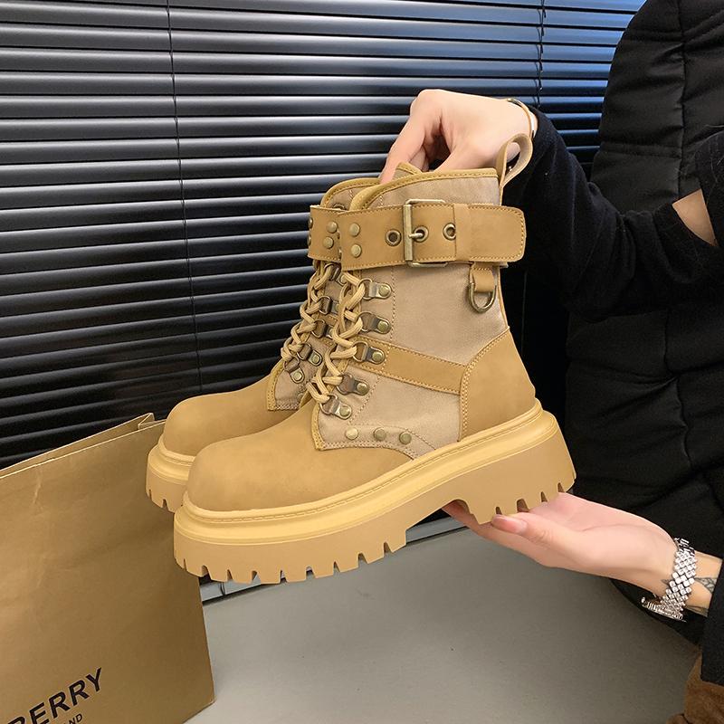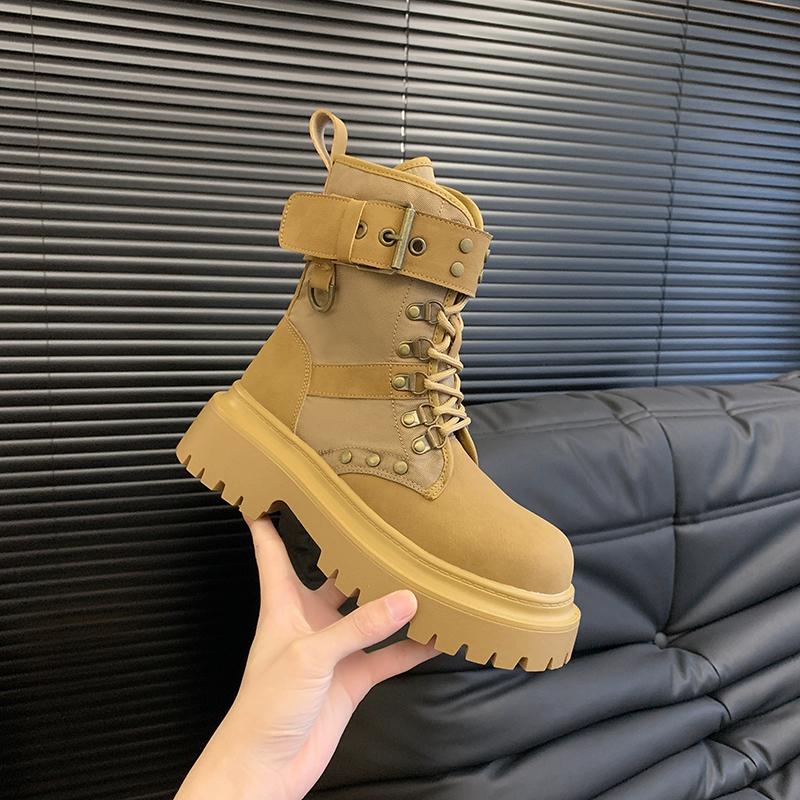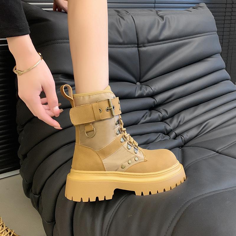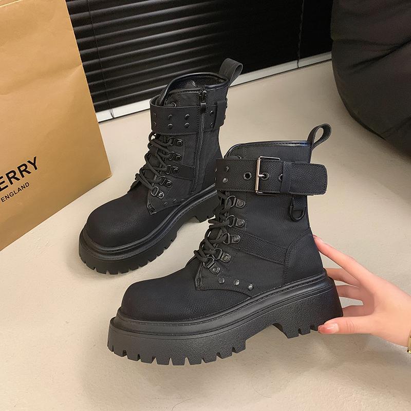 2024 Новые Зимние Женские Короткие Ботинки на Платформе Модные Элегантные Женские Ботильоны на Шнуровке Уличные Ботинки на Толстой Подошве Мотоциклетные Ботинки