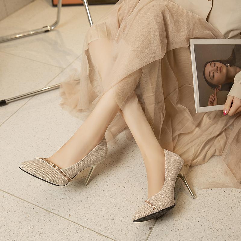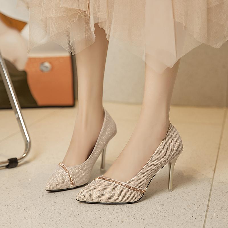 2024 Новые Весенне-Осенние Универсальные Женские Туфли в Французском Стиле с Острым Носком, Стразами, Тонким Каблуком, Высоким Каблуком 9 см, из Резинового Материала, Балетки