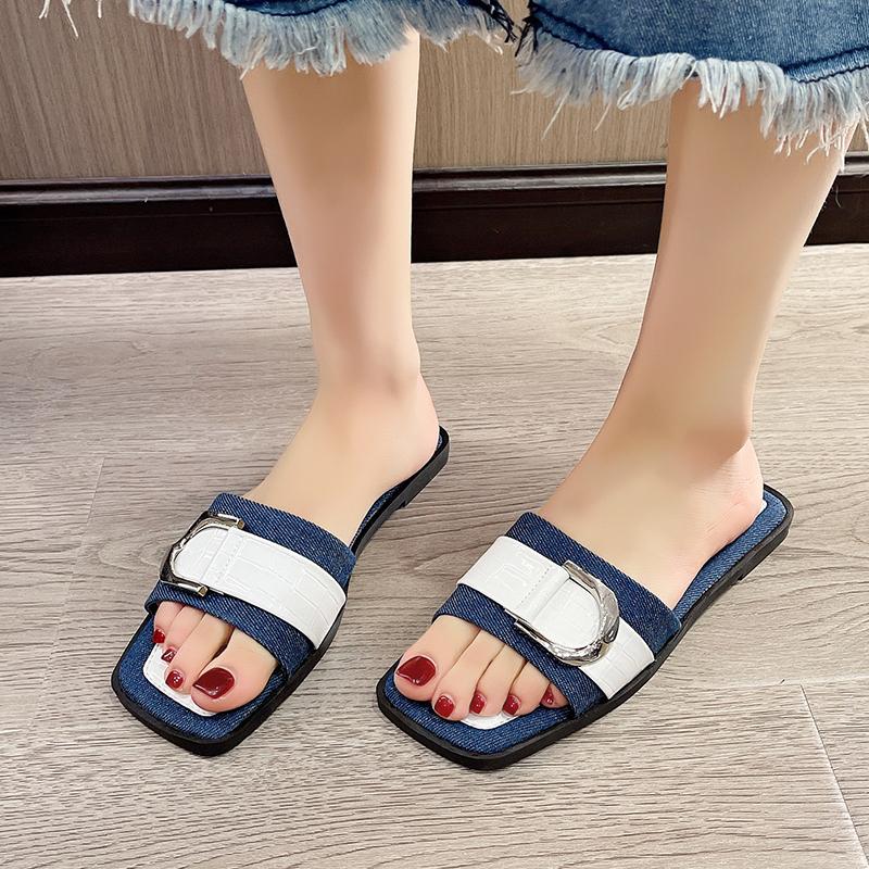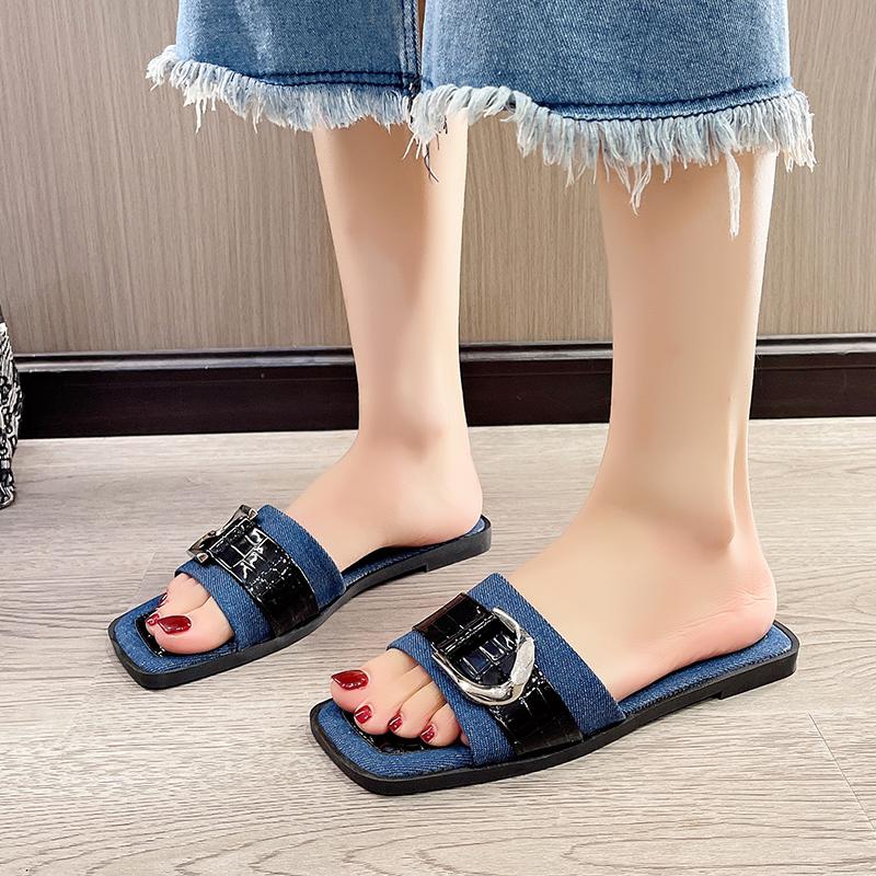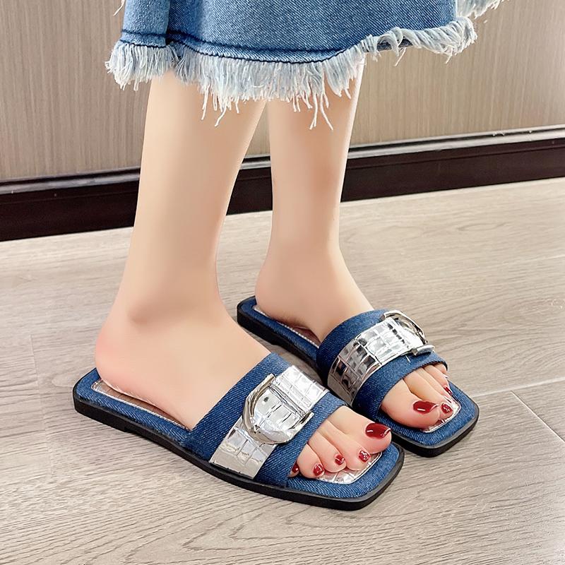 Женские роскошные модные однополосные шлепанцы минималистичные простые уличные сандалии на плоской подошве 2024 года летние новые песчаные пляжные тапочки с открытым носком