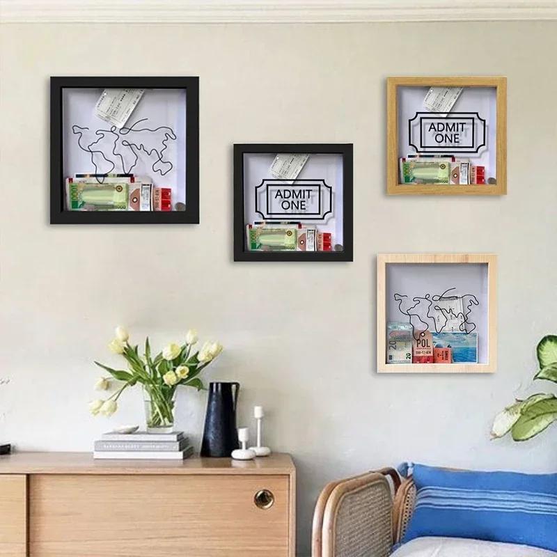 Копилка для билетов, путешествий, приключений, архивная коробка, копилка, деревянная монетница, детский фонд, почтовая открытка, сувенир, настенная фоторамка