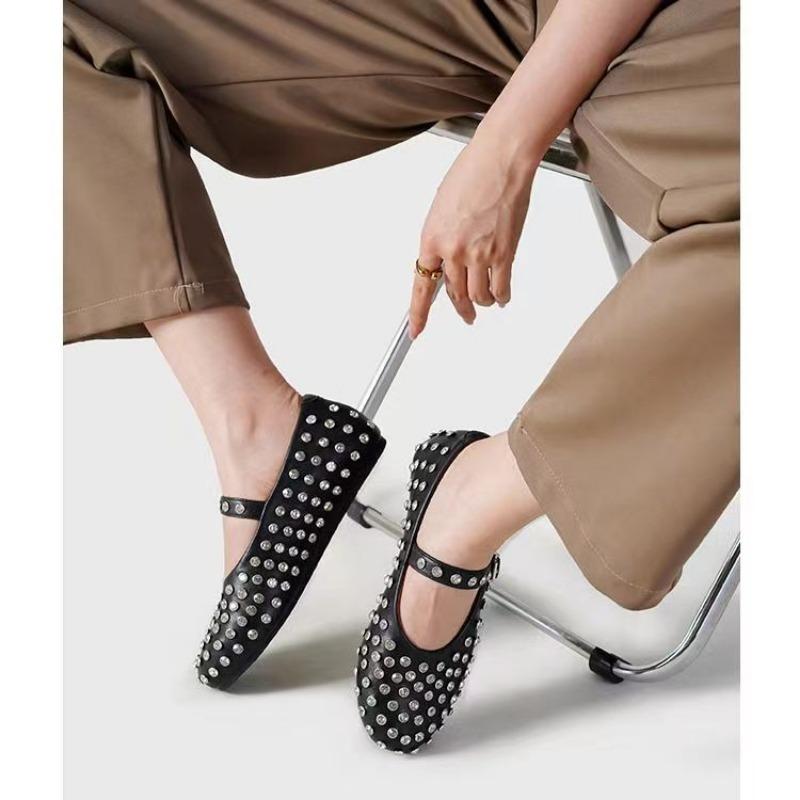 Новые классические туфли для женщин, модные балетки, повседневные кожаные стильные женские туфли-скелетоны с кристаллами