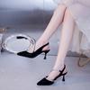 2024 Сандалии Универсальные Туфли на низком каблуке с ремешком Костюм Женский Бежевый Новый Низкий каблук Комфорт Шпилька Стразы Черный Мода