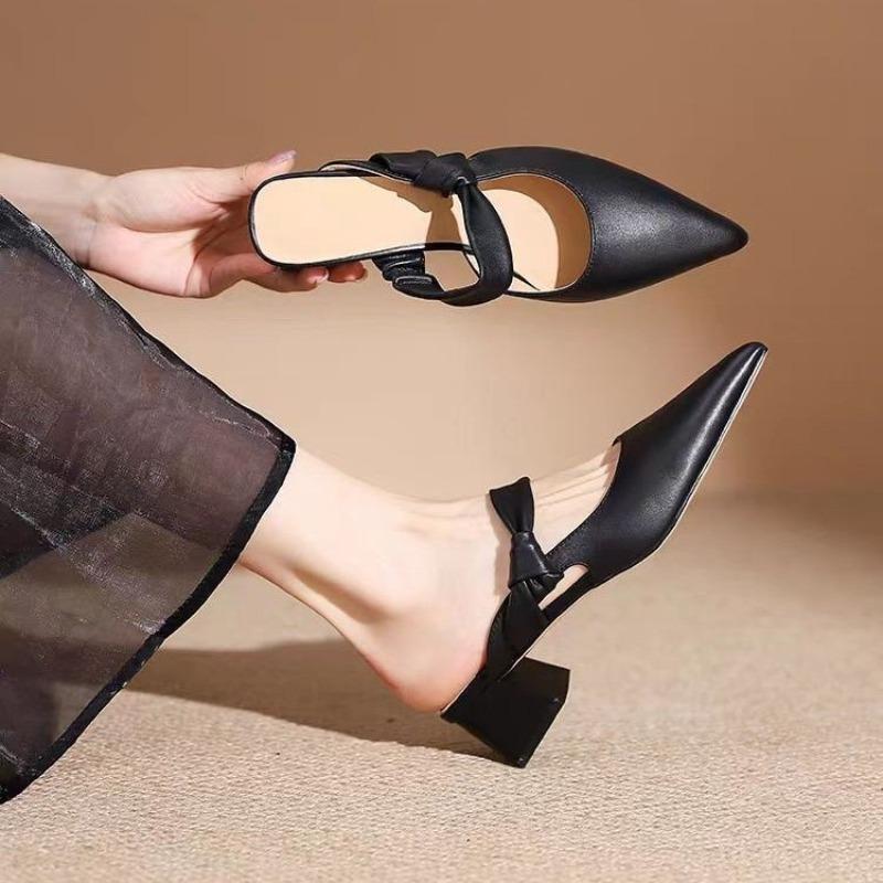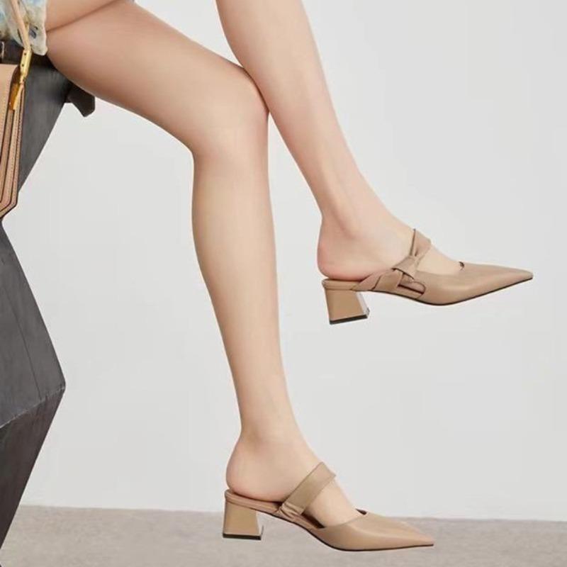 2024 Весна Лето Новые Тапочки с острым носком и вырезом Женские однотонные слипоны на каблуке 5 см Сандалии Мюли Обувь Женские