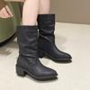 Женские массивные одинарные ботинки 2025 года, осенние новые, с круглым носком, с отворотом, с рукавами-фонариками, с противоскользящей подошвой, удобные, до середины голени