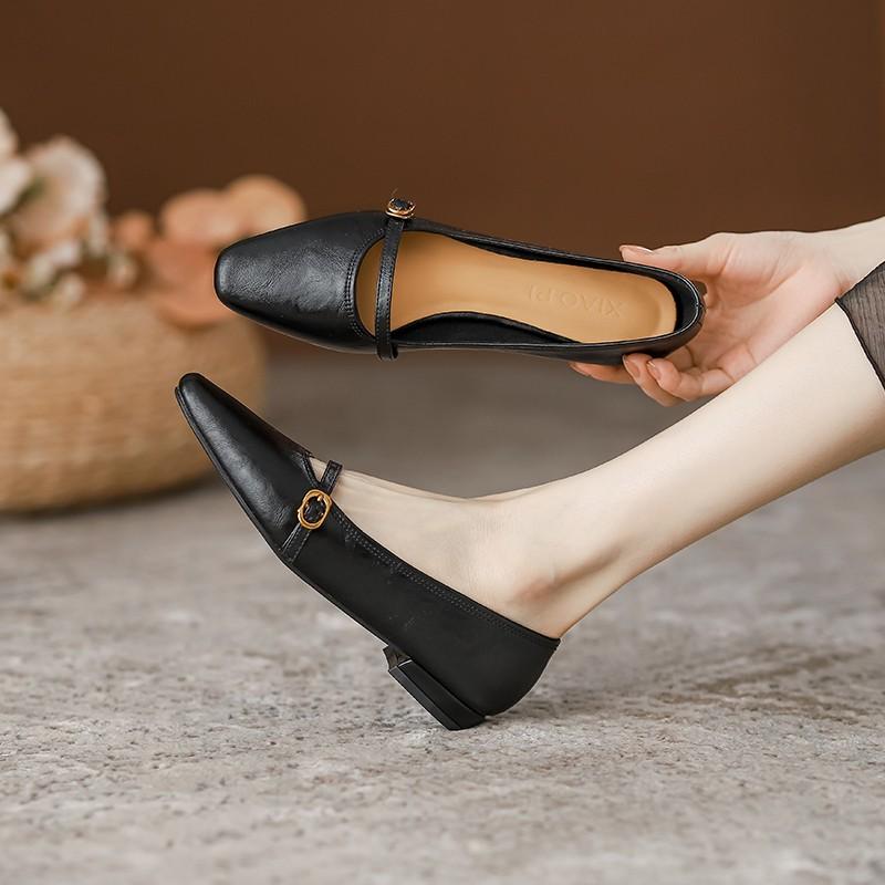 2024 Женские летние новые стильные модные дизайнерские туфли на квадратном каблуке с пряжкой, простые однотонные повседневные офисные туфли для женщин на высоком каблуке