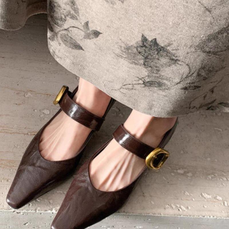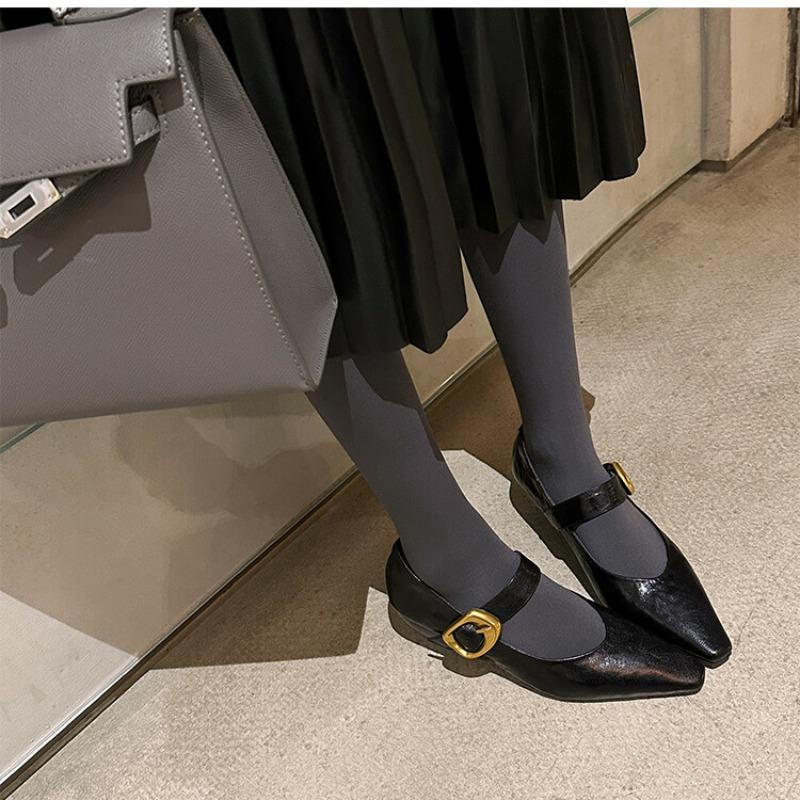 Простая обувь из натуральной кожи Женская обувь 2024 Ретро туфли Мэри Джейн на низком каблуке Женская французская элегантность