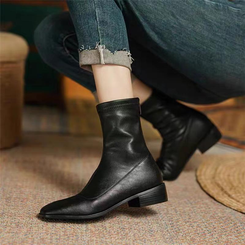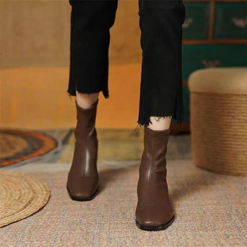 Французская женская обувь осень-зима классические женские ботинки темпераментные ботинки Anlke элегантные женские туфли на каблуках с хлопковым теплым кожаным ботинком