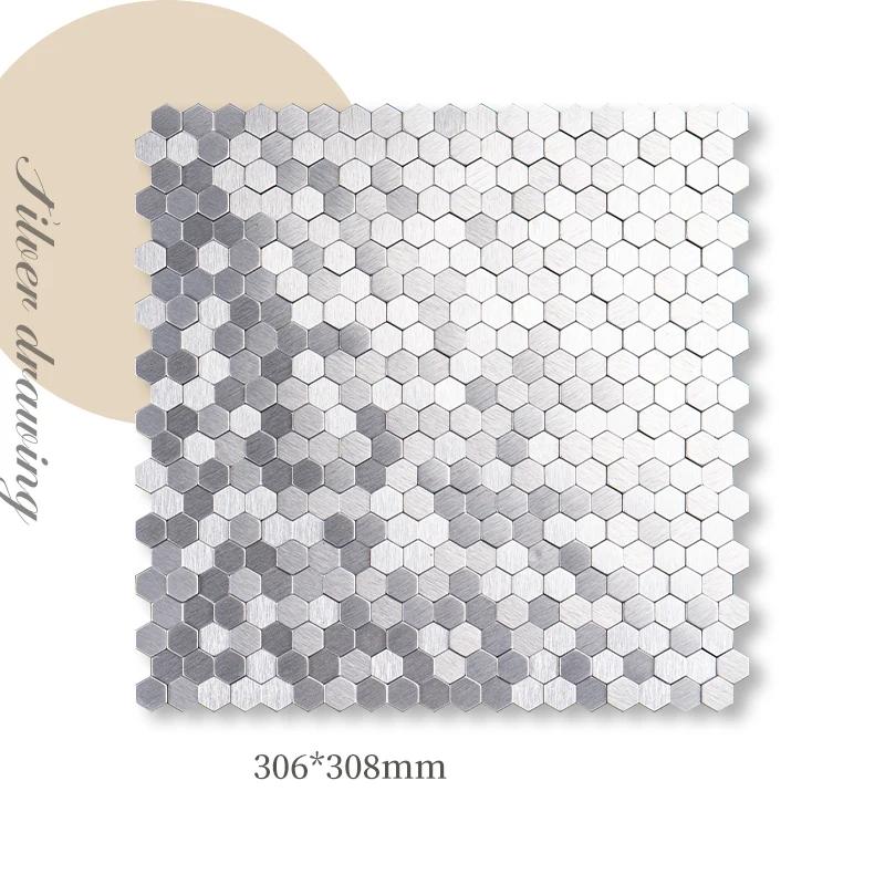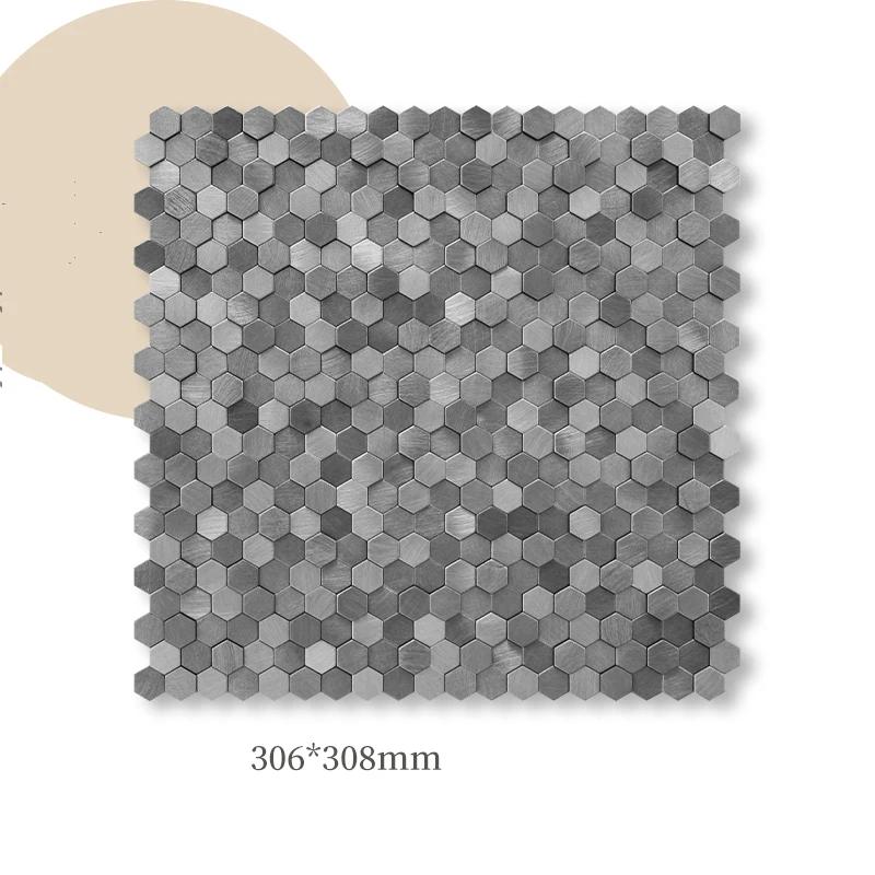 30x30 см металлическая настенная мозаика из нержавеющей стали 3D мозаика для ванной комнаты алюминиевый шестигранный мозаичный фон самоклеящаяся наклейка на стену
