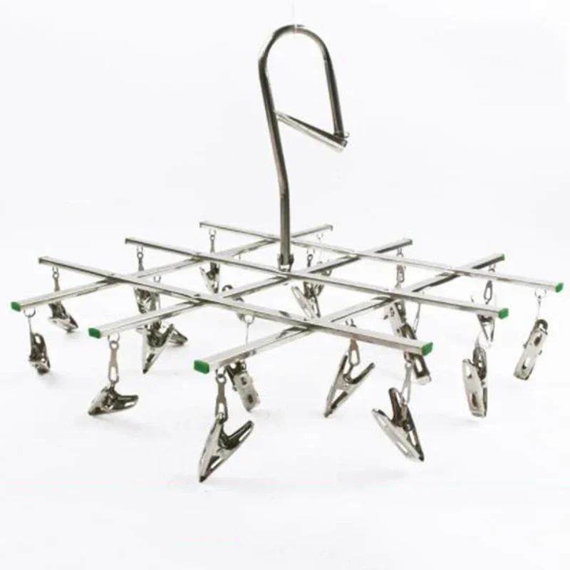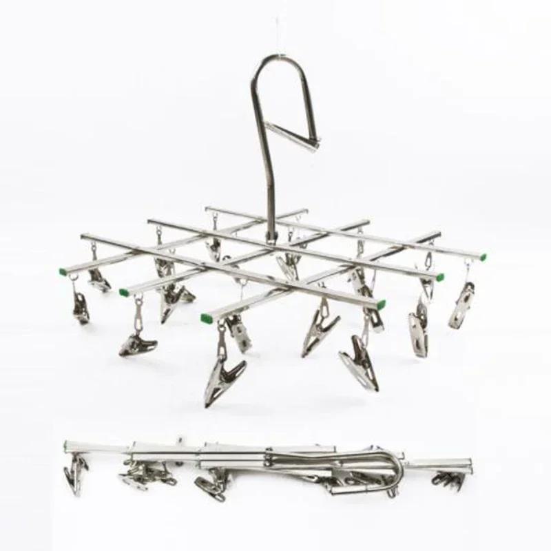 Складная вешалка для белья и носков из нержавеющей стали с 20 зажимами Складная вешалка для белья и носков из нержавеющей стали с 20 зажимами