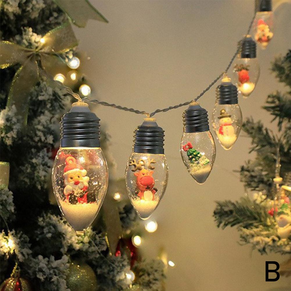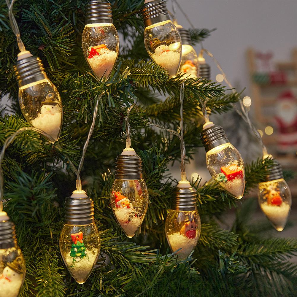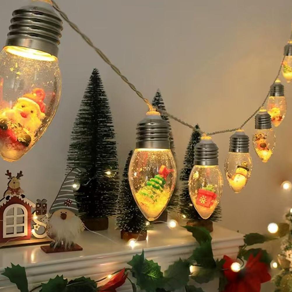 Праздничный дизайн: Каждая лампочка украшена рождественскими елками, снежинками и снегом, что создает очаровательную атмосферу зимней и праздничной ночи.. Доступны в различных длинах и с разным количеством лампочек на нить для индивидуального заказа.