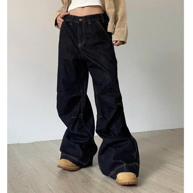 Y2k черные джинсы женские винтажные свободные уличные брюки-карго из денима широкие повседневные мешковатые прямые джинсовые брюки — купить товар онлайн с бесплатной доставкой по всему миру!