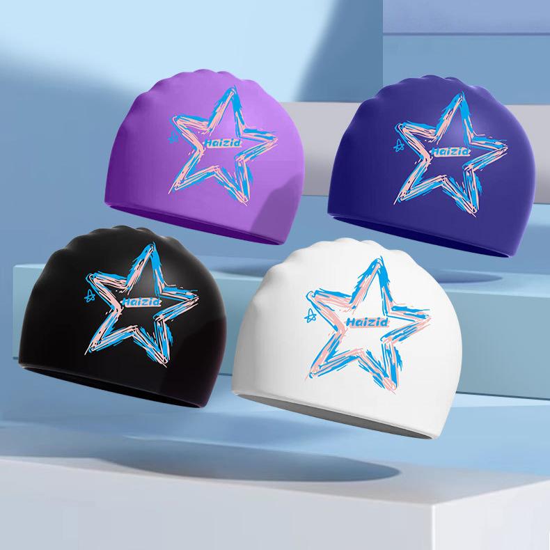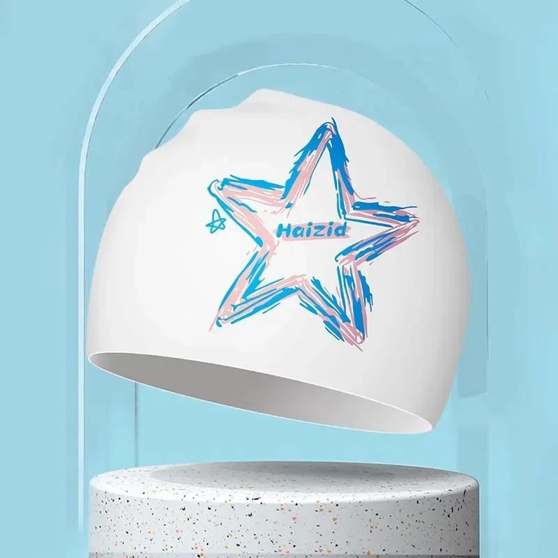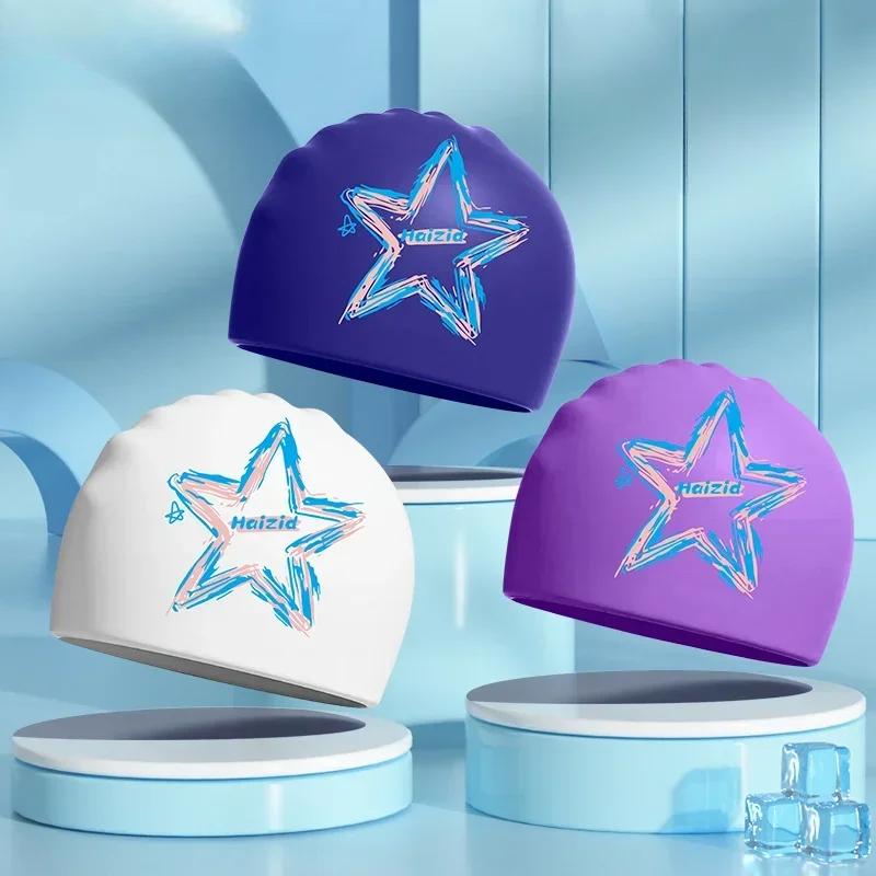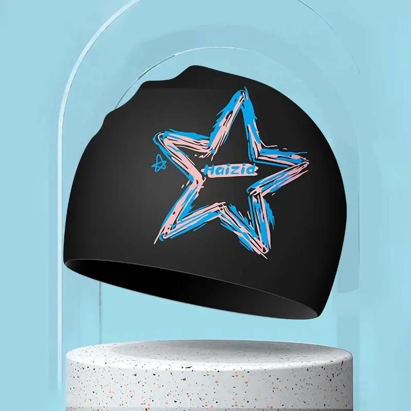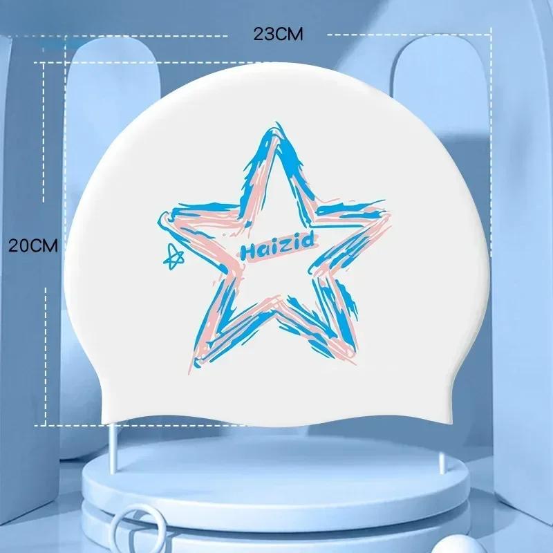 Взрослые силиконовые водонепроницаемые шапочки для плавания с принтом для женщин и мужчин, большие шапочки для плавания с длинными волосами, аксессуары для плавания