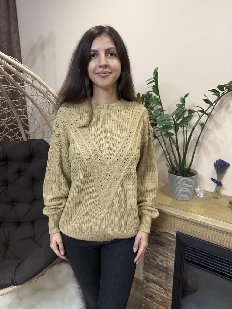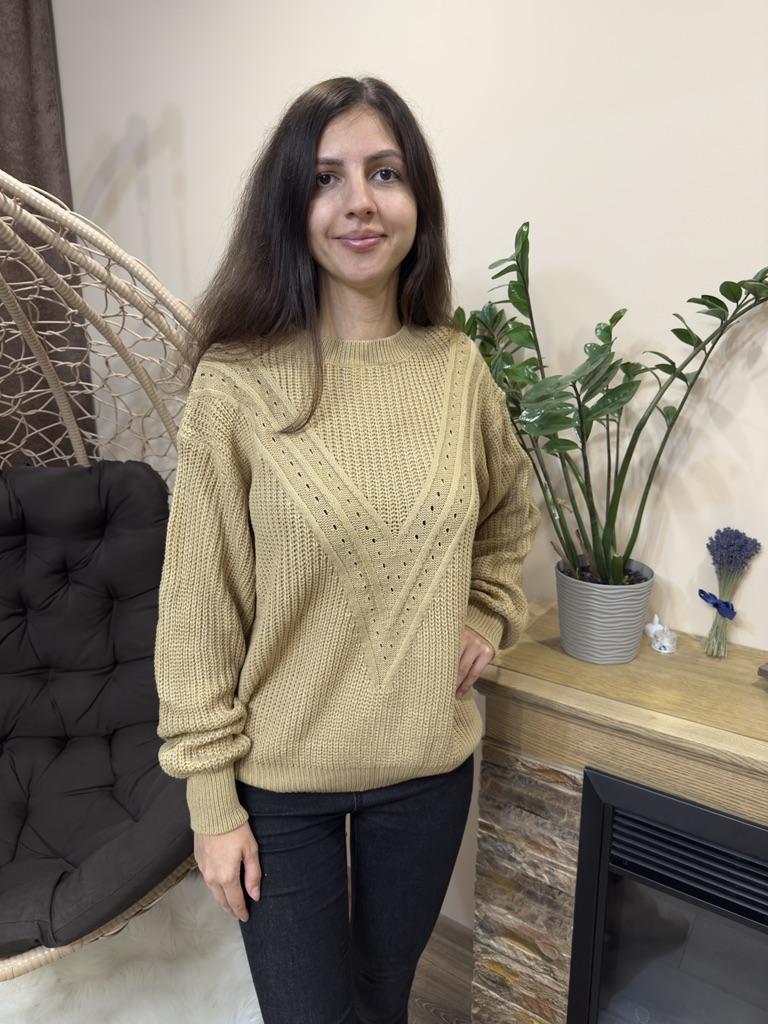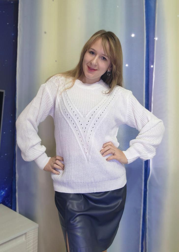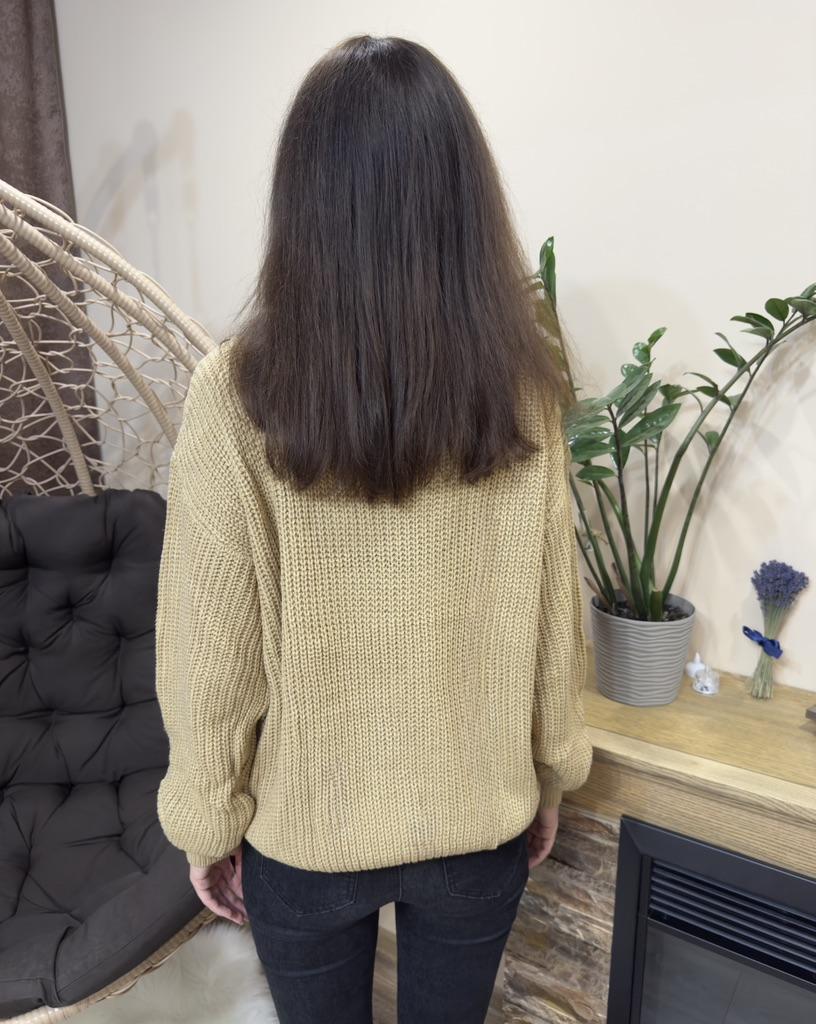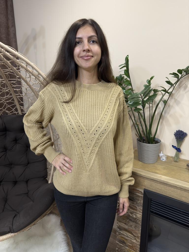 Женский вязаный свитер с V-образным вырезом 🧶✨ Стильный и уютный свитер свободного кроя для осени и зимы. 🔹 Красивый V-образный вырез визуально вытягивает силуэт. 🔹 Рукава-фонарики добавляют женственности и объёма. 🔹 Мягкая, приятная к телу вязка — комфортно и тепло. 🔹 Универсальный дизайн — подходит и для повседневного образа, и для уютных вечеров. Идеально сочетается с джинсами, юбками и брюками. Размер XL на параметры: 🌸объем груди - 86 см 🌸объем талии - 61 см 🌸рост 173 см 🌸вес 51 кг