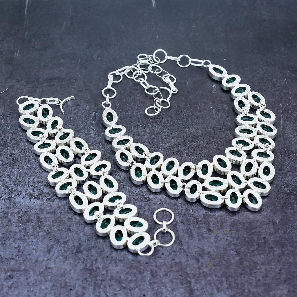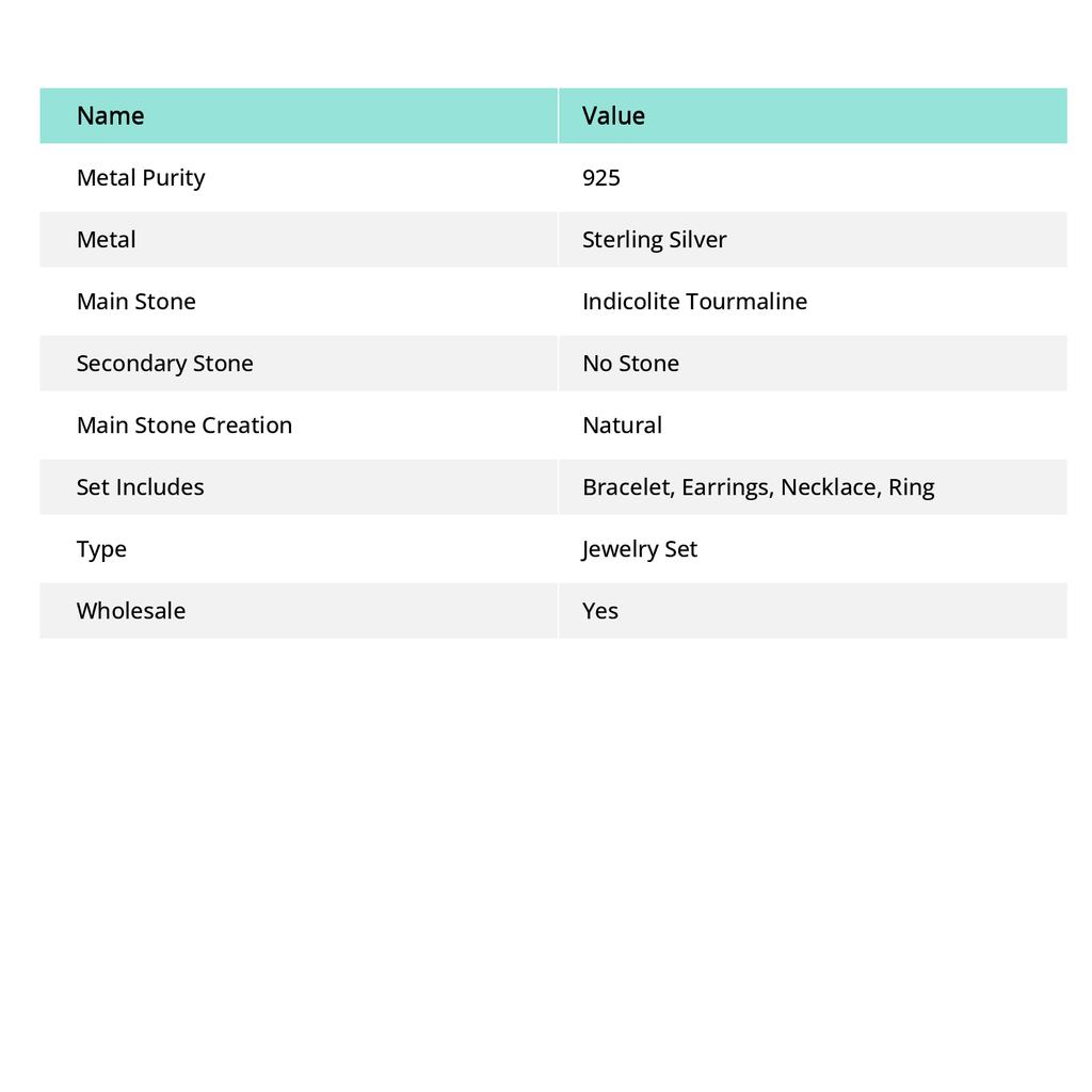 Комплект ювелирных изделий из серебра 925 пробы с индиголитом и турмалином, изготовленный вручную, r2H29