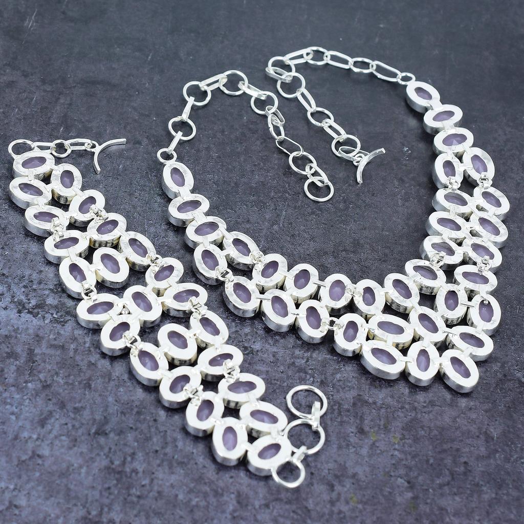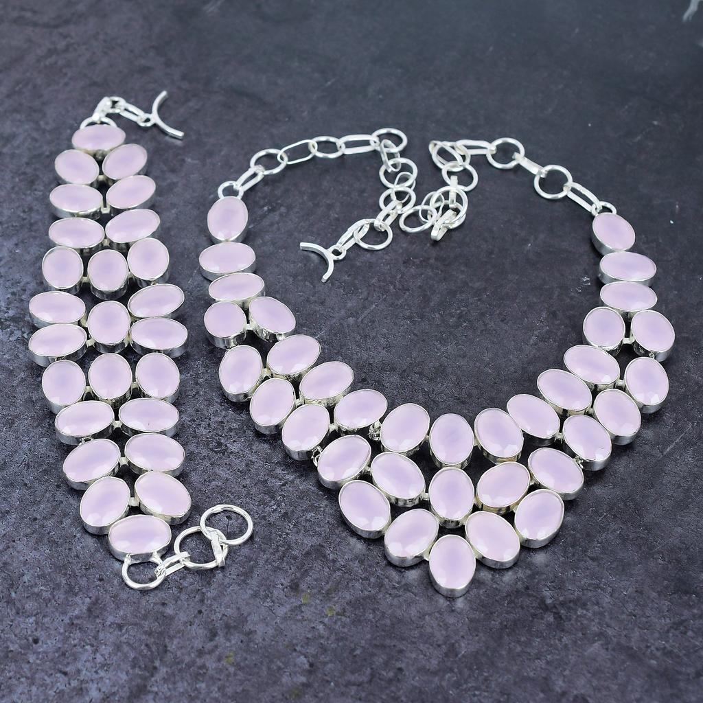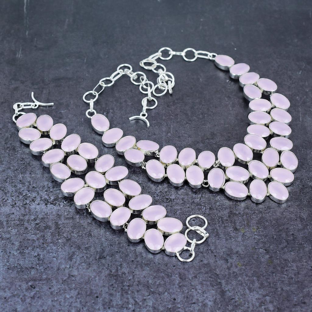 Комплект украшений ручной работы из серебра 925 пробы с розовым халцедоном k0C44