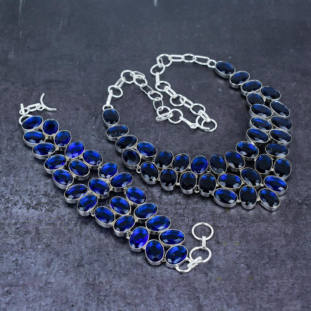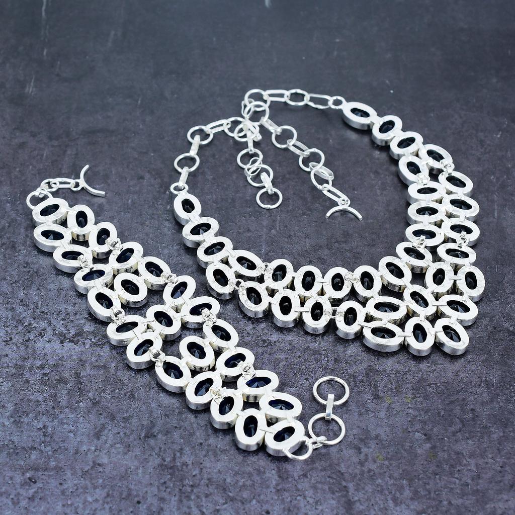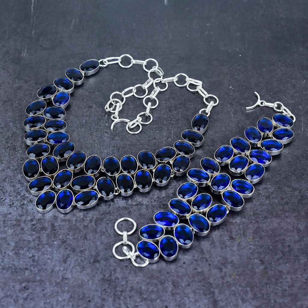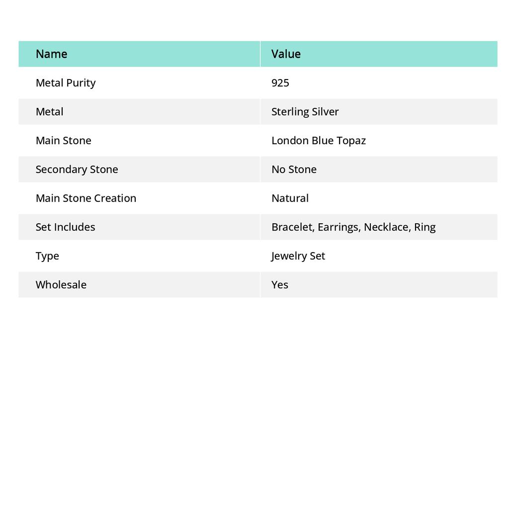 Лондонский голубой топаз Драгоценный камень Ручной работы Серебро 925 пробы Набор украшений H6i38