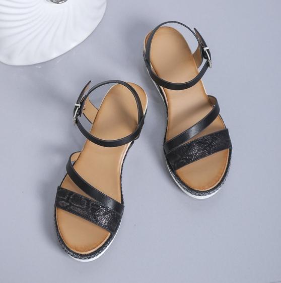 Летние босоножки на танкетке с пряжкой на ремешке на платформе, римские босоножки, женские с открытым носком, толстая подошва, нескользящие, сандалии, женские, большие размеры 36-43