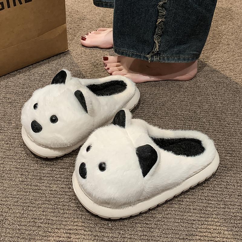2024 Осень и зима Новые женские плюшевые тапочки Baotou с толстой подошвой и милой мультяшной собакой, теплые и удобные хлопковые тапочки