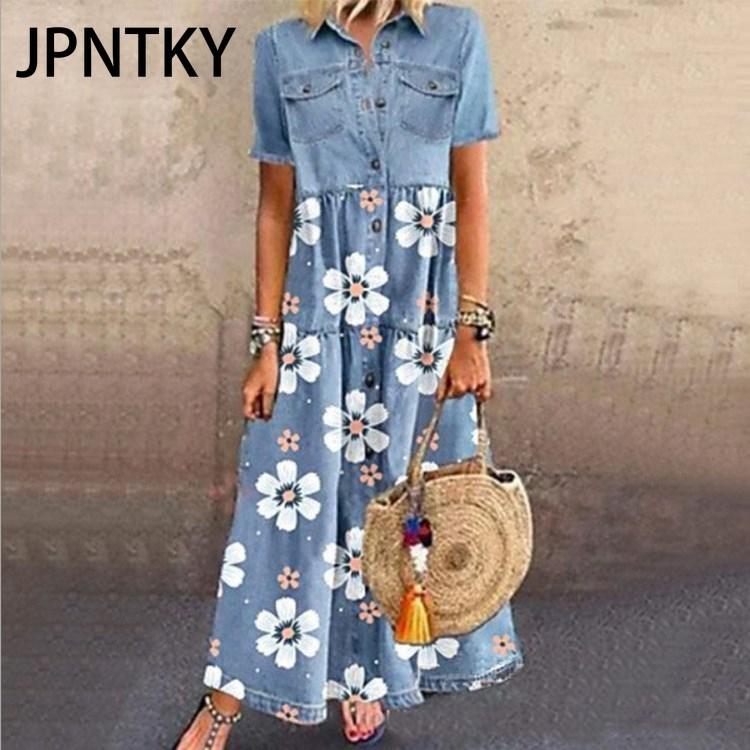 JPNTKY Женская мода лето весна короткий рукав поло-воротник повседневные платья