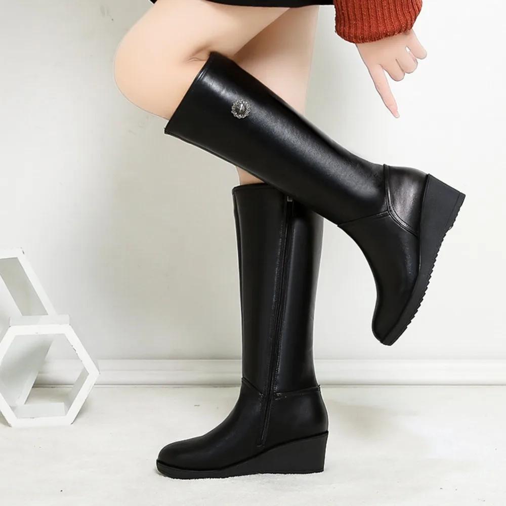 Женские сапоги, элегантная обувь на каблуке, зимние туфли до колена, длинные туфли для женщин, туфли на танкетке, водонепроницаемые сапоги со стразами