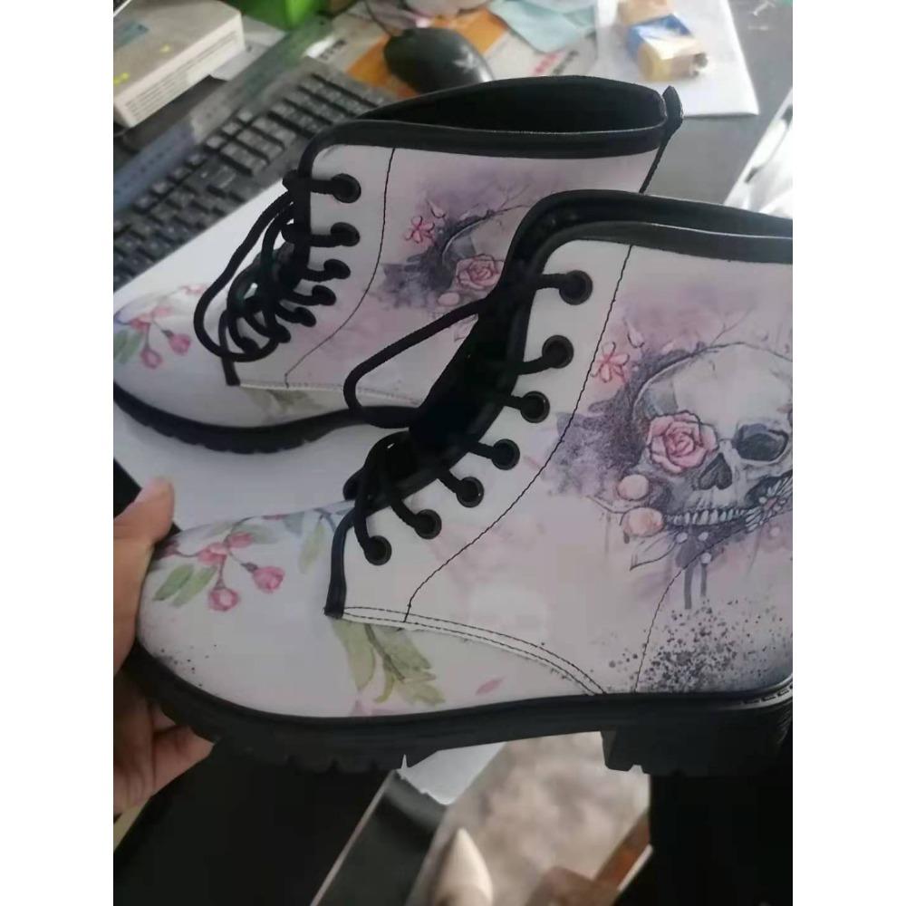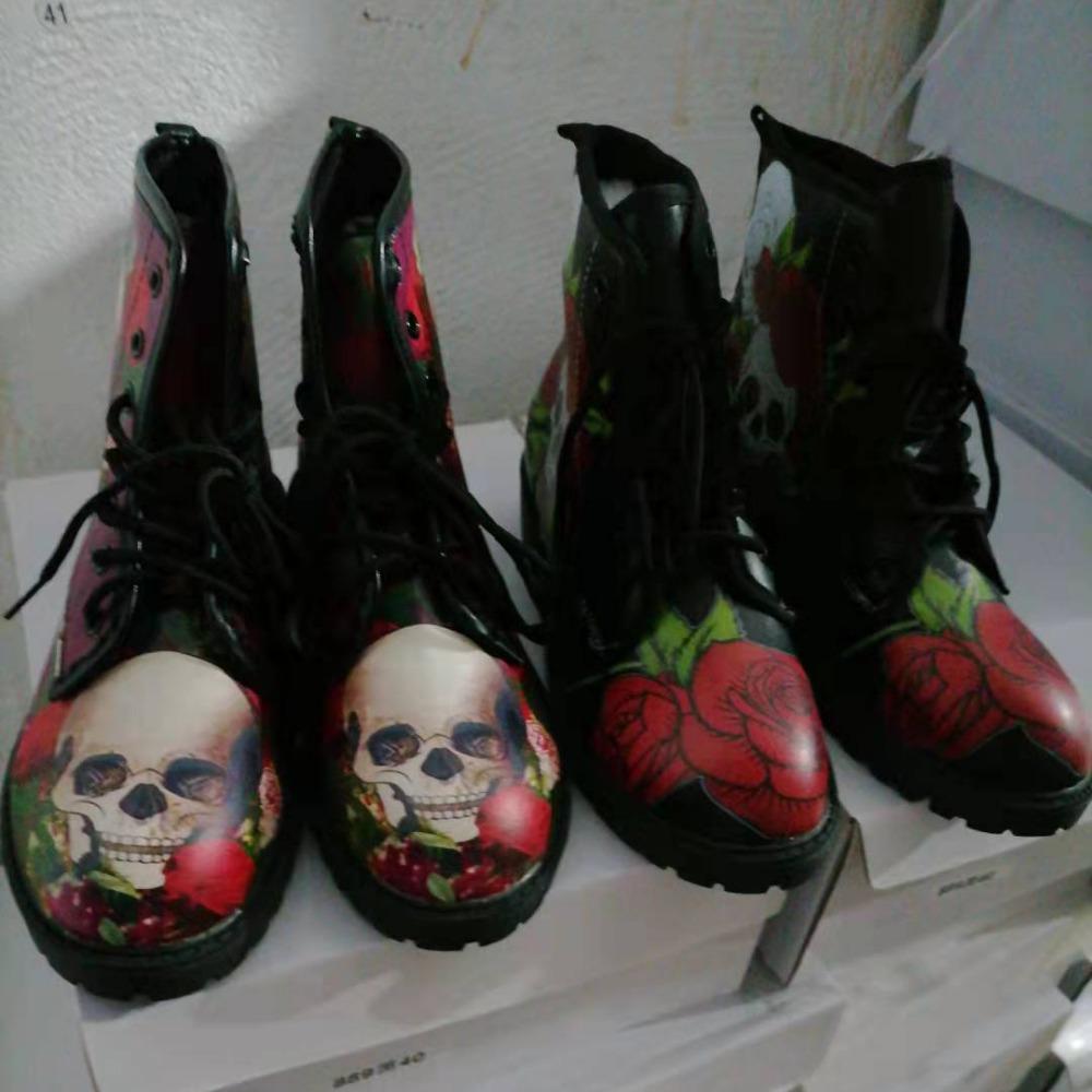 2024 Высокие кроссовки с цветочным принтом черепа, женские ботинки, осенне-зимние модные женские ботильоны, большие размеры 43