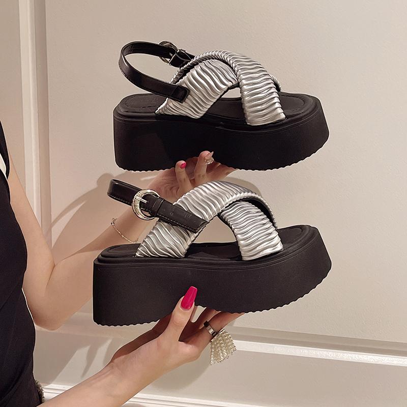 2024 Новые летние сандалии, модные, удобные и повседневные, на толстой подошве, на платформе, в британском стиле, повседневная женская обувь