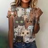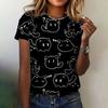 Женская футболка с принтом кошки, одежда 2024 года, летний круглый вырез, короткий рукав, элегантный повседневный топ, свободная дышащая женская одежда, футболка