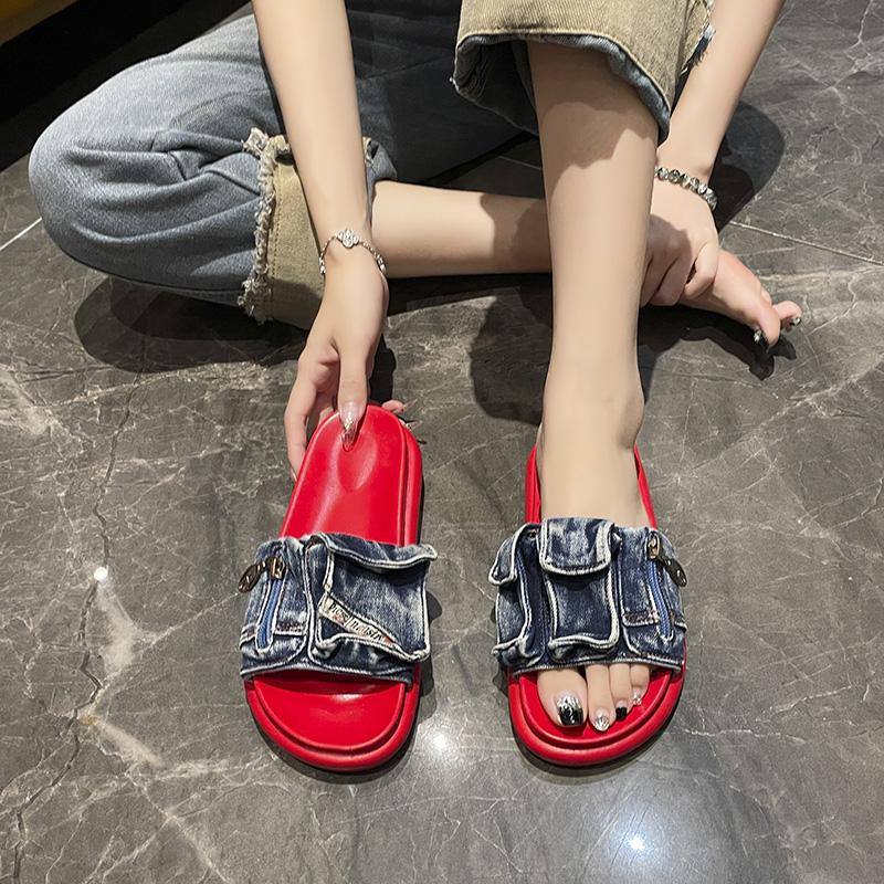 Обувь для женщин 2024 Горячая распродажа Летние женские шлепанцы Уличные Однотонные Джинсовые С открытым носком На низком каблуке Большой размер Повседневные шлепанцы Женские