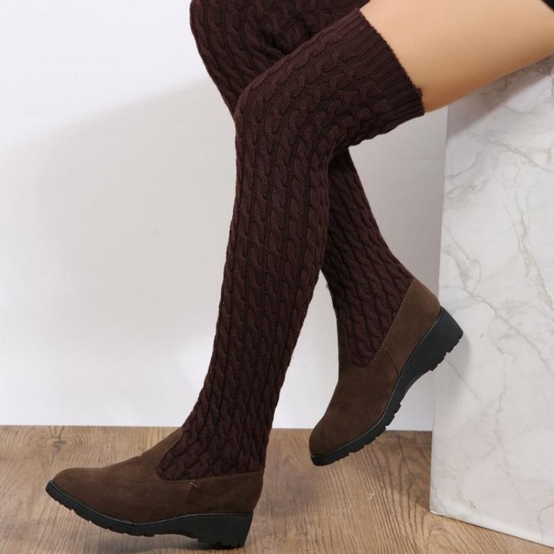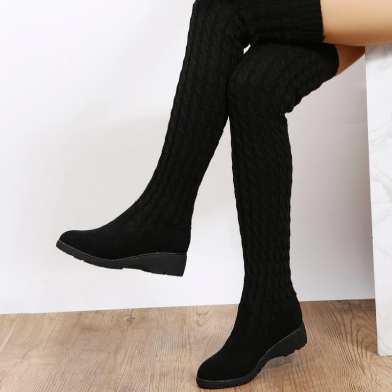 2024 Зимние вязаные шерстяные высокие носки сапоги для женщин Плоские выше колена Длинные эластичные узкие сапоги Сапоги до колена Женские дизайнерские