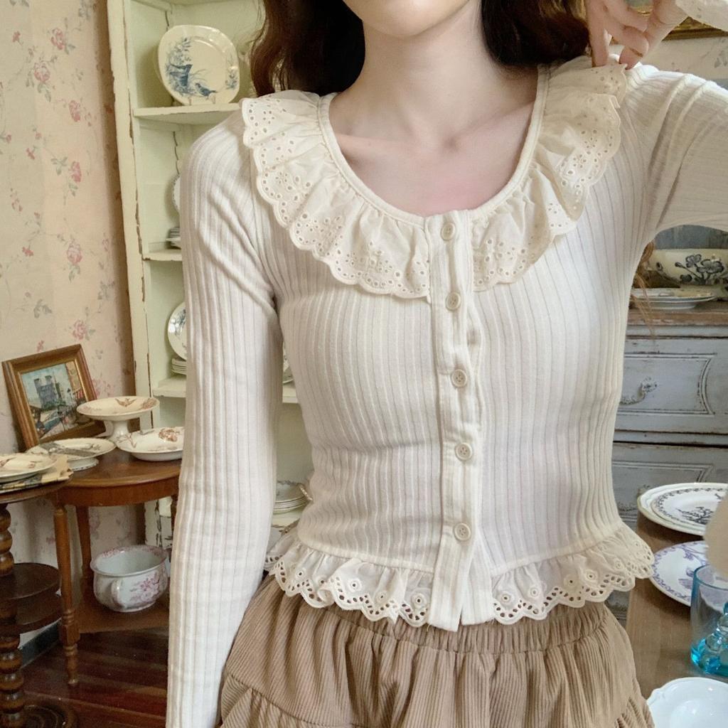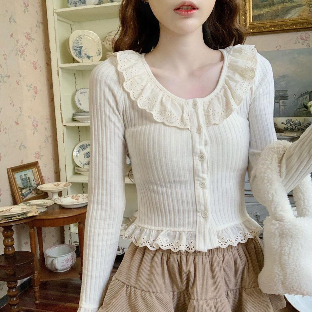 Корейские футболки с длинным рукавом женские тонкие оборки милые внутренние укороченные топы повседневные осенне-зимние расклешенные рукава модная одежда