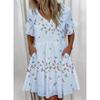 JPNTKY Женская мода лето весна короткие рукава V-образный вырез повседневные платья