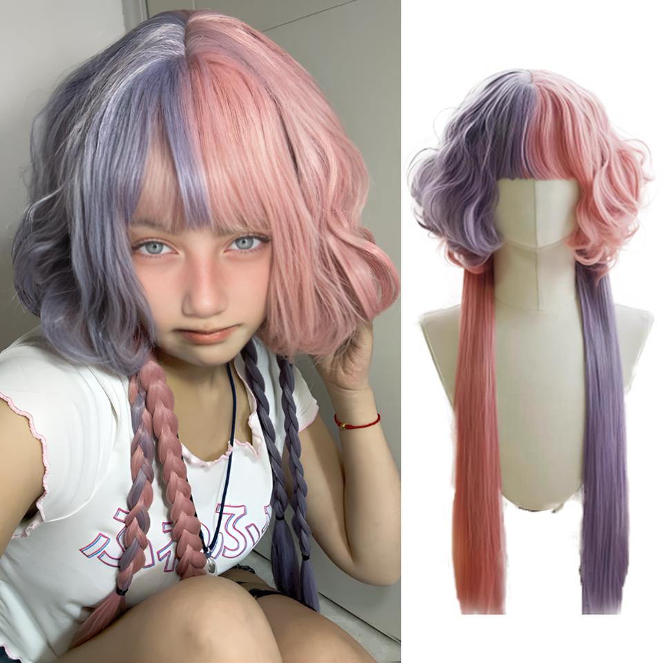 WTB синтетический парик женский таро фиолетовый заклинание розовые вьющиеся волосы милый Лолита многослойный цветной вьющийся парик для косплея вечеринки