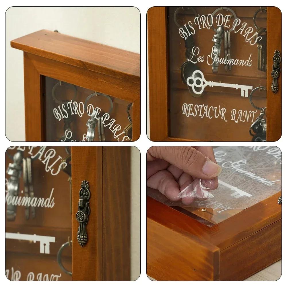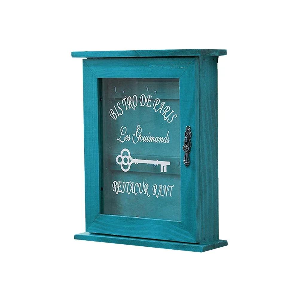 Органайзер, винтажный деревянный ящик для хранения ключей с крючком, семейная ключница, сине-коричневый шкаф, настенное украшение