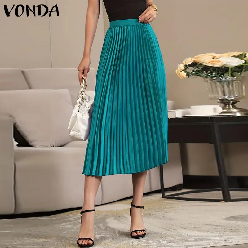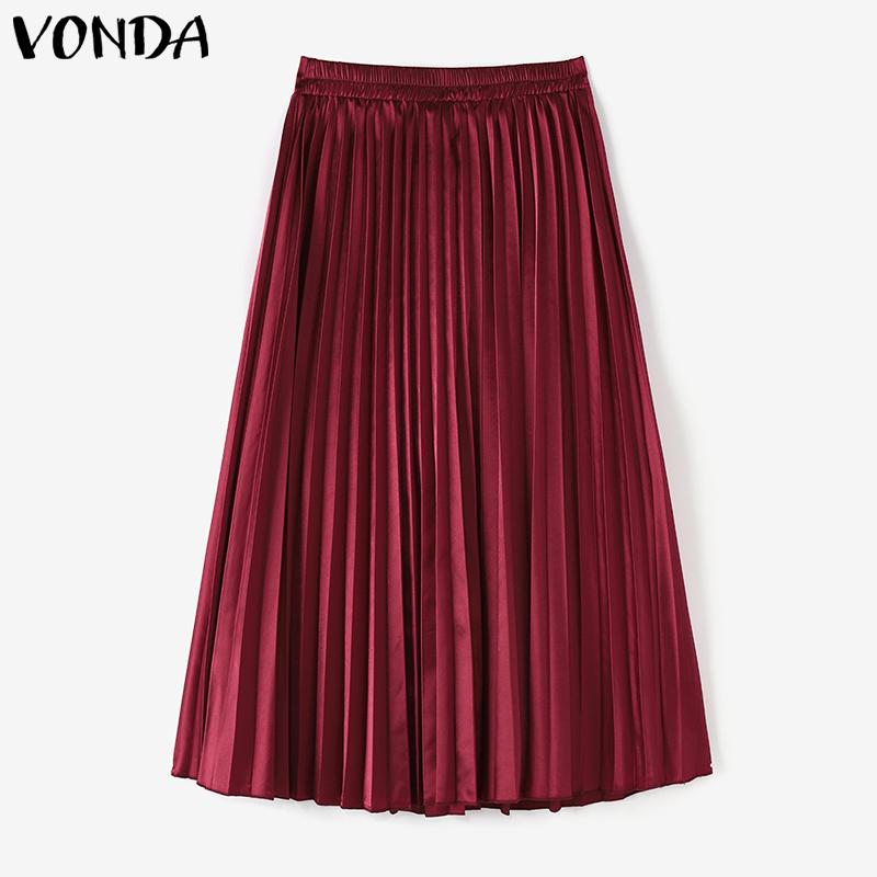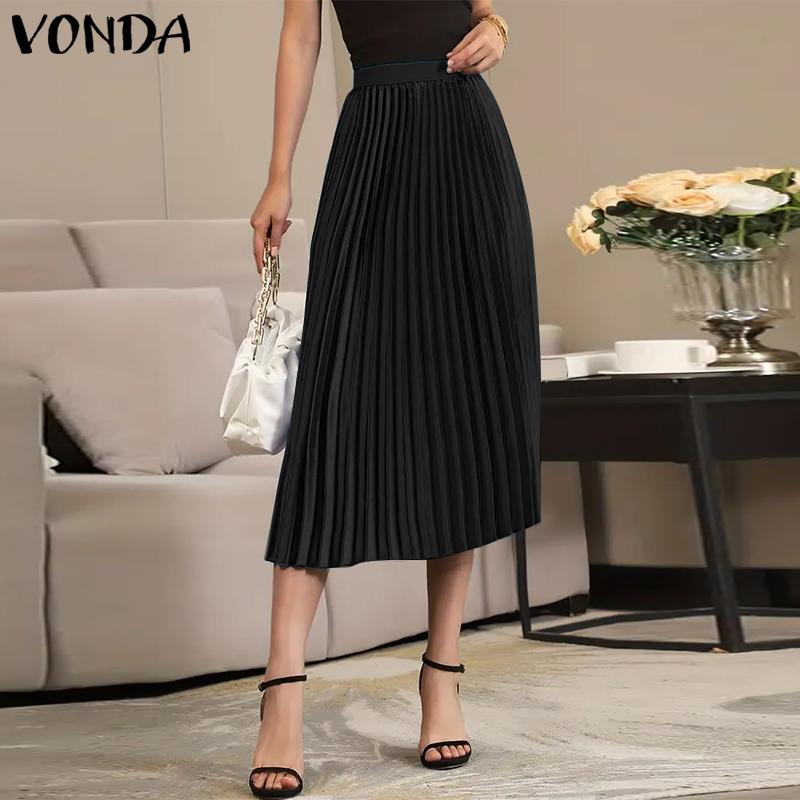 VONDA Женская мода однотонные плиссированные облегающие юбки А-силуэта