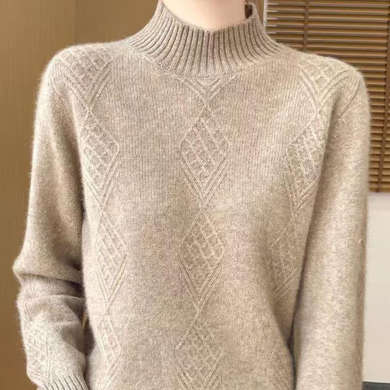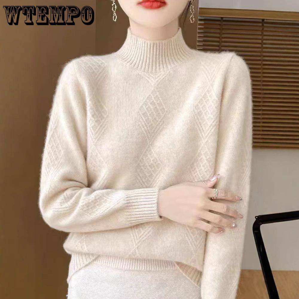 Жаккардовый вязаный свитер с полувысоким воротником, женский осенне-зимний однотонный вязаный свитер с длинными рукавами, свободный толстый пуловер