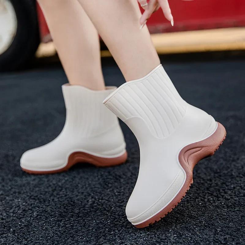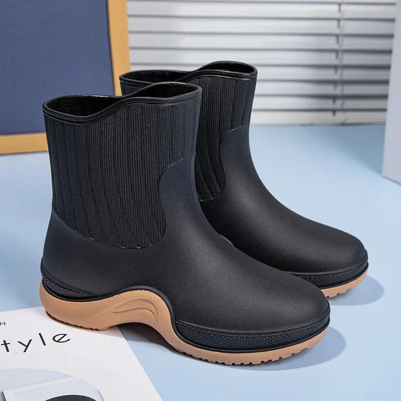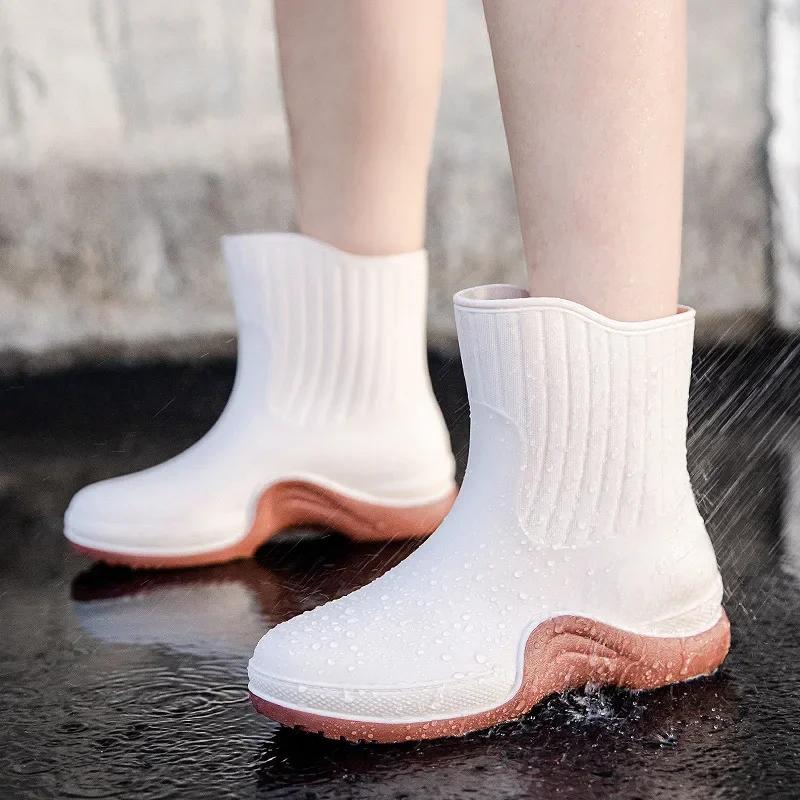 Женские удобные резиновые сапоги, нескользящие, водонепроницаемые, женская обувь, модные, повседневные, теплые резиновые сапоги, резиновые бахилы 2024