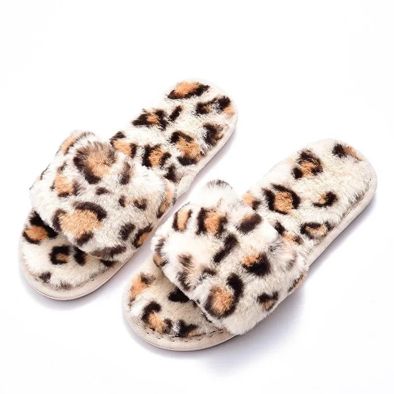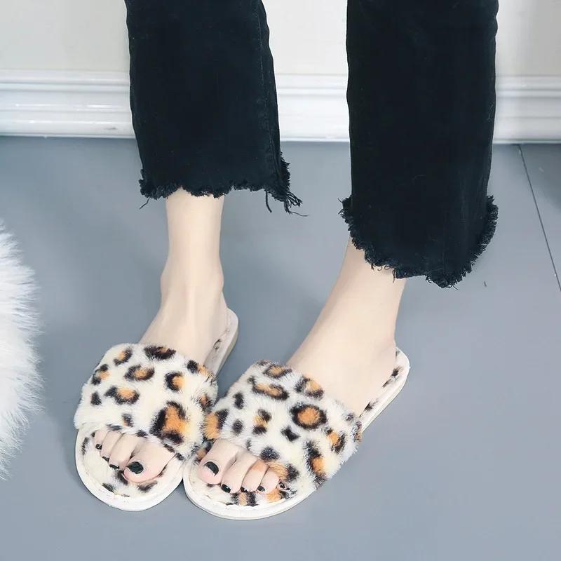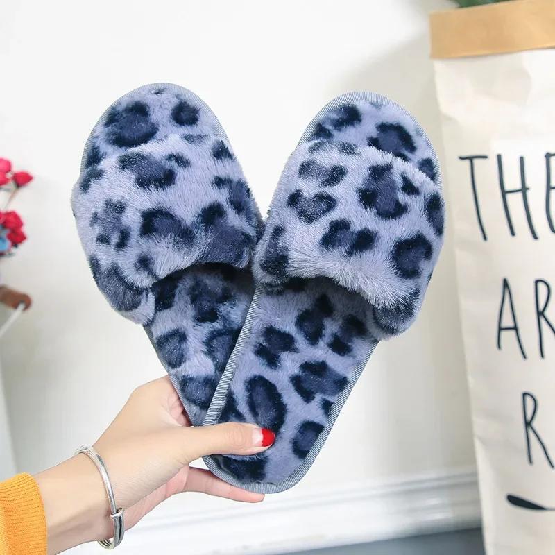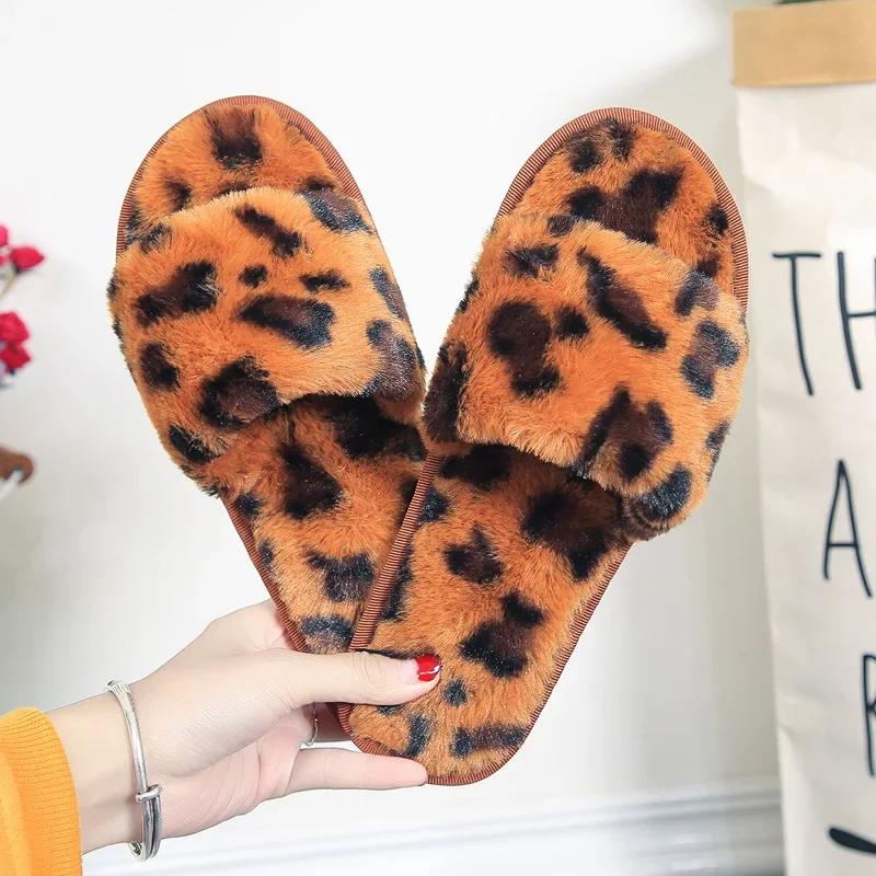 Женские домашние тапочки с леопардовым узором, новые зимние теплые нескользящие хлопковые тапочки на плоской подошве, легкие повседневные туфли