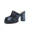 Женские сандалии 2024 года, новые летние новые джинсовые тапочки, женские тапочки Baotou Lazy Fashion, высокие каблуки, толстые каблуки, модные тапочки