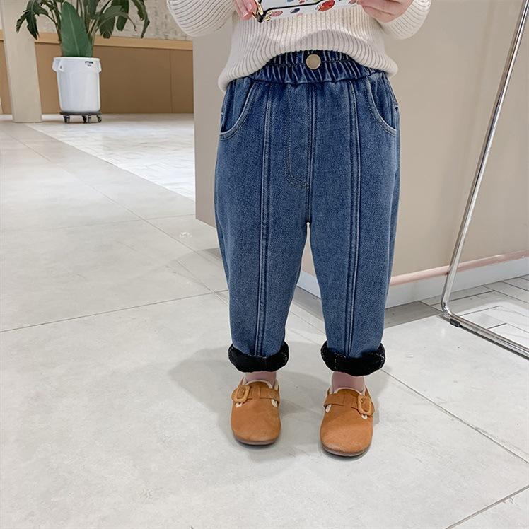 Детские плюшевые утолщенные джинсы зимние брюки корейские мальчики зарубежный стиль теплые детские повседневные брюки джинсы для девочек ясельного возраста детская одежда