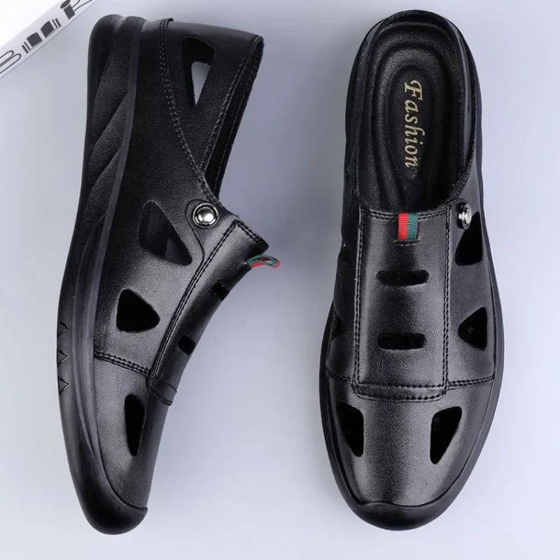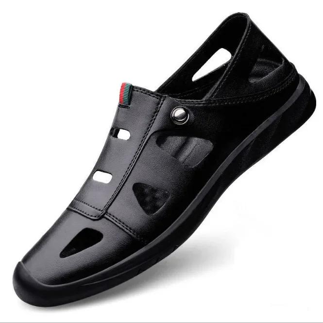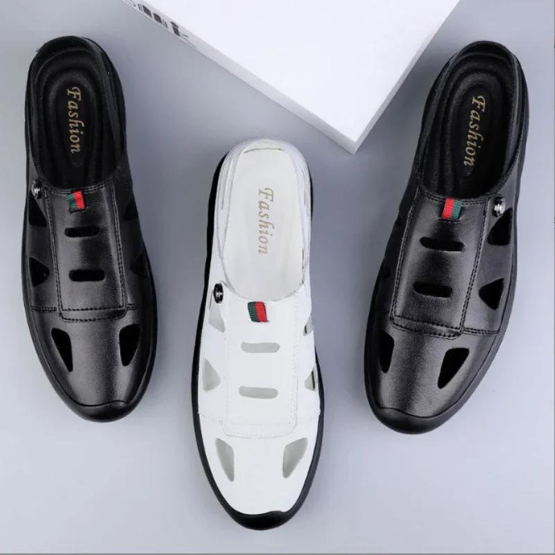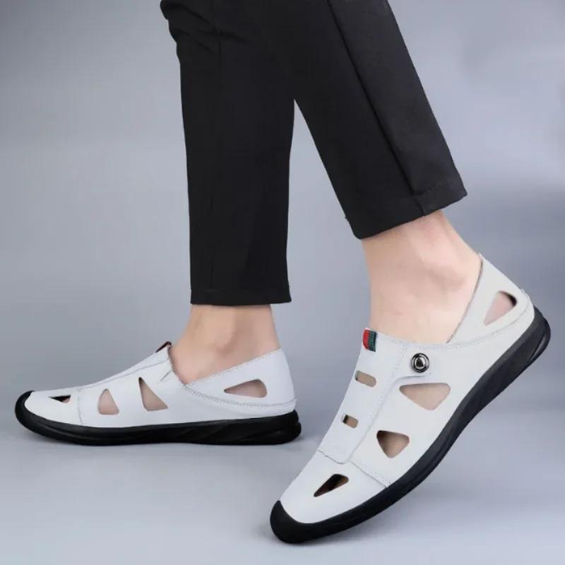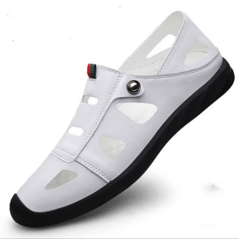Сандалии из полой кожи для мужчин 2024 года, новые повседневные туфли для мужчин с маленькими белыми туфлями и отверстиями для повседневных кожаных туфель