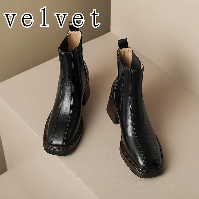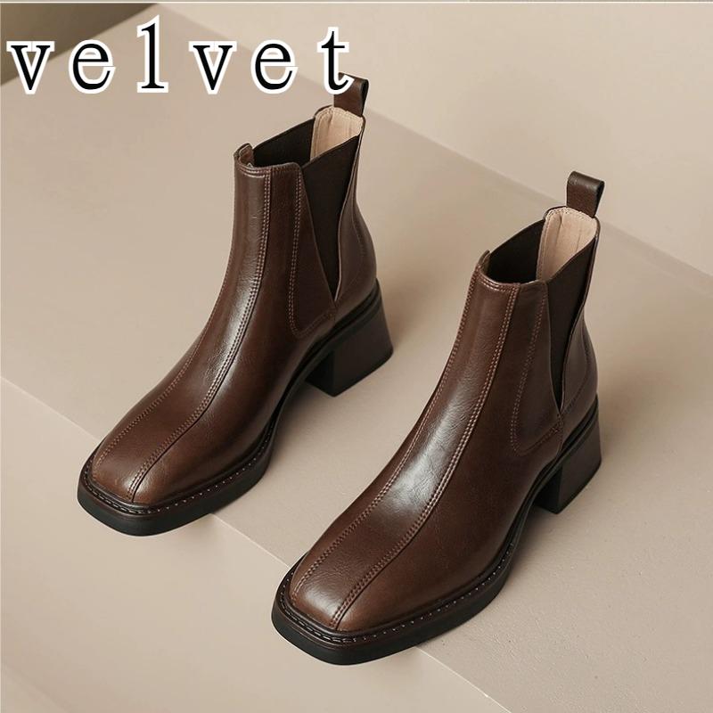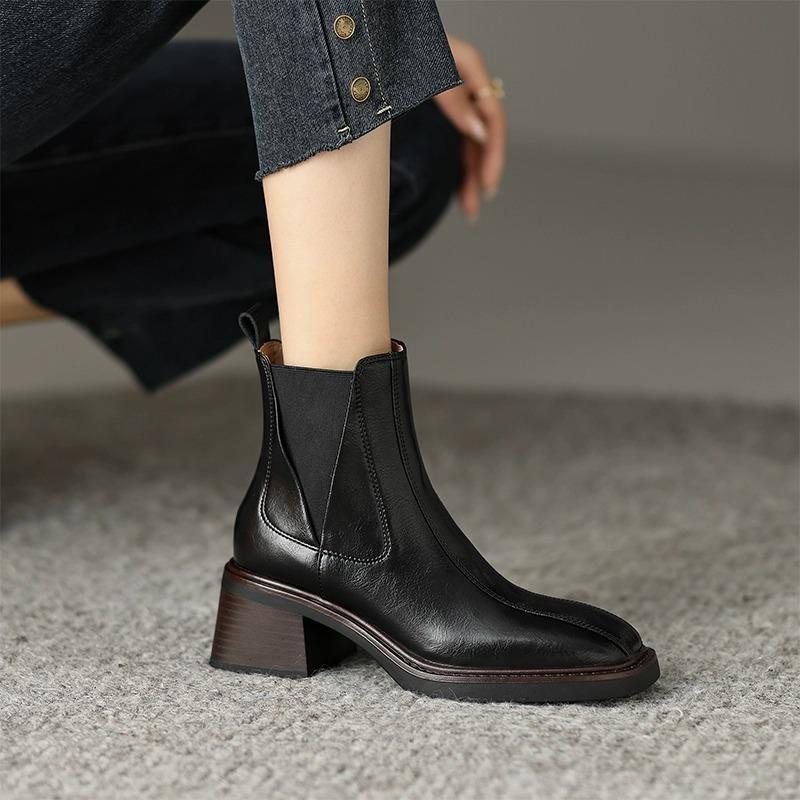 Осенние и зимние ретро короткие сапоги женские 2024 новые натуральная кожа толстый каблук квадратный носок ботинки челси высокие каблуки женские туфли