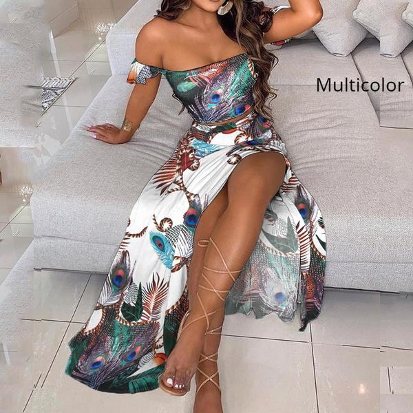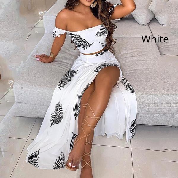 Женский комплект из юбки, элегантный укороченный топ с открытыми плечами и мини-юбка с разрезом, комплект из двух предметов