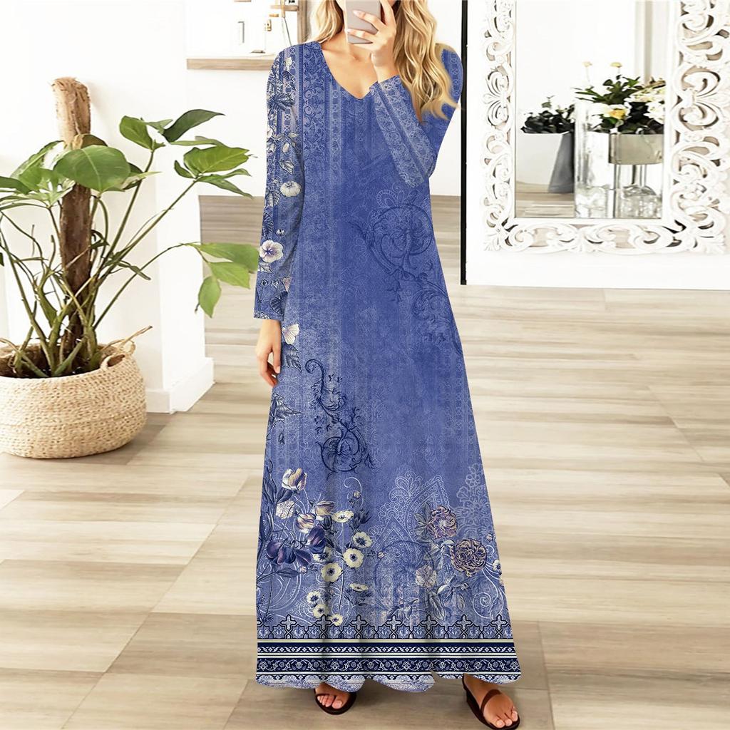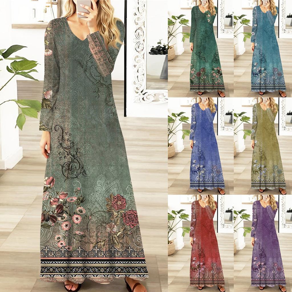 Женские повседневные модные длинные платья с графическим принтом и длинным рукавом, осень
