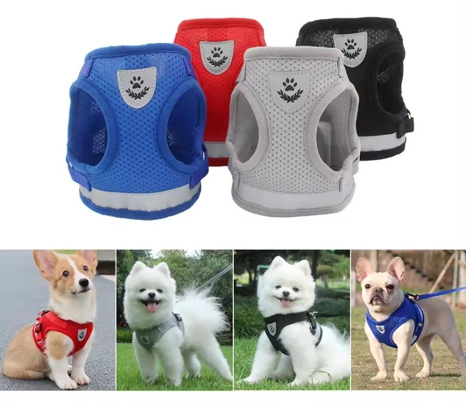 Регулируемая дышащая шлейка и поводок для домашних собак, кошек, жилет для кошек, поводки для щенков, котят, светоотражающий ошейник для кошек