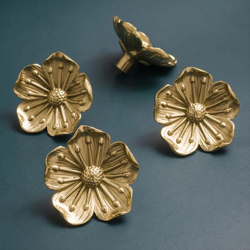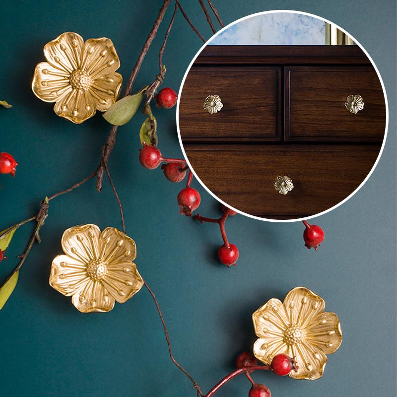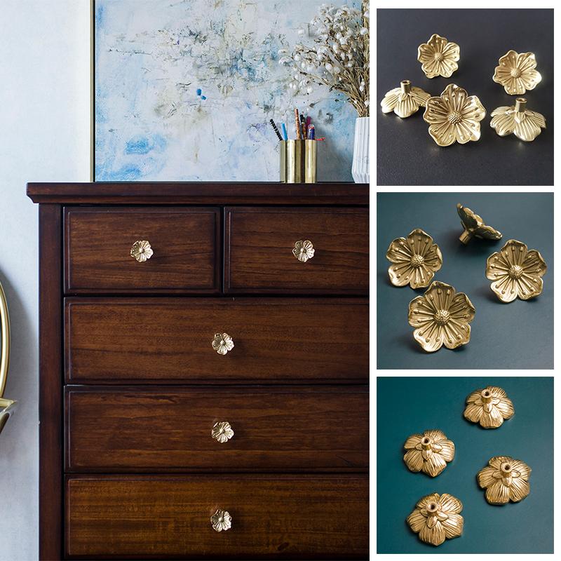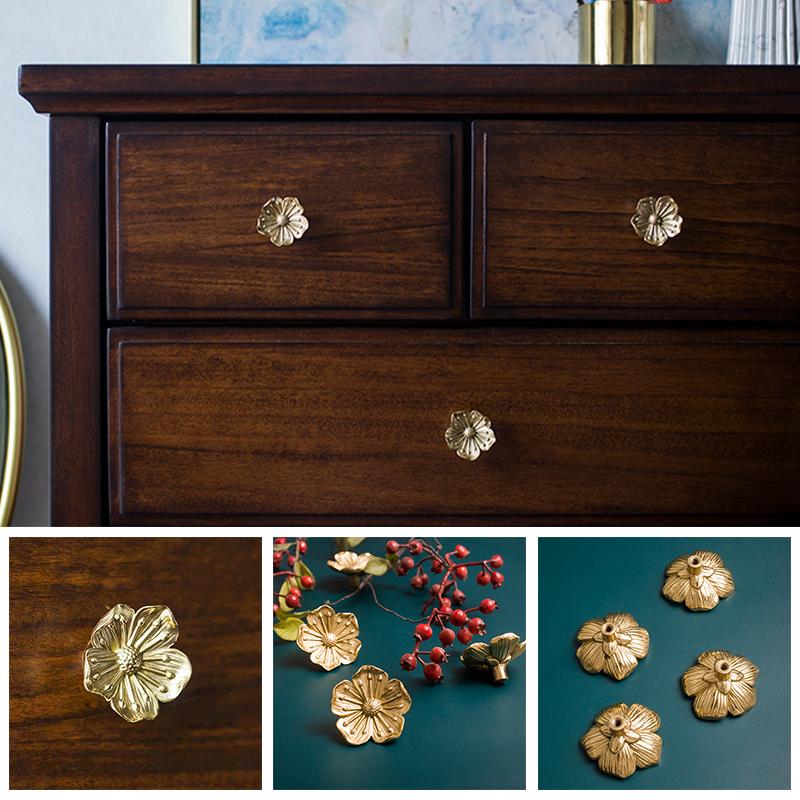 Ретро латунный цветок ящик дверная ручка шкафа для одежды чайная шкатулка для украшений ручка декоративная ручка мебельная фурнитура