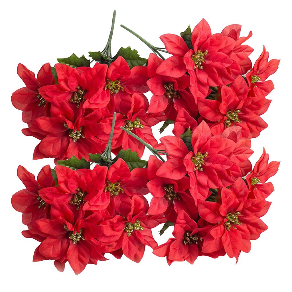 Искусственные 4 штуки в упаковке по 7 головок шелковой ткани, рождественские красные кусты пуансеттии, 35 см/13,8 дюйма