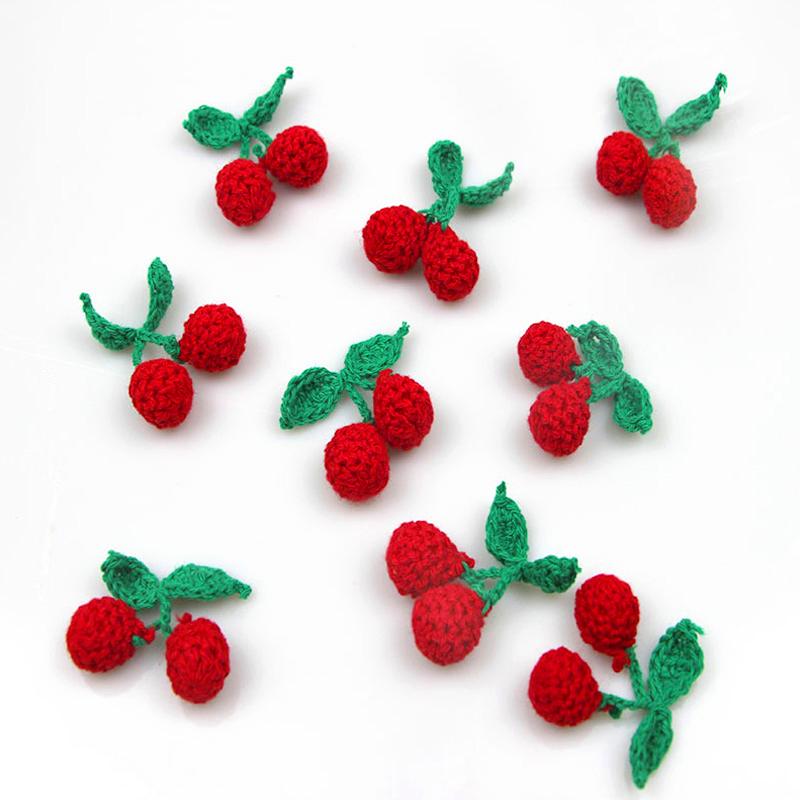 10 шт. вязаные крючком вишневые нашивки аппликация для одежды заколка для волос украшение ручная вязка фрукты своими руками ручная работа ремесла швейные принадлежности