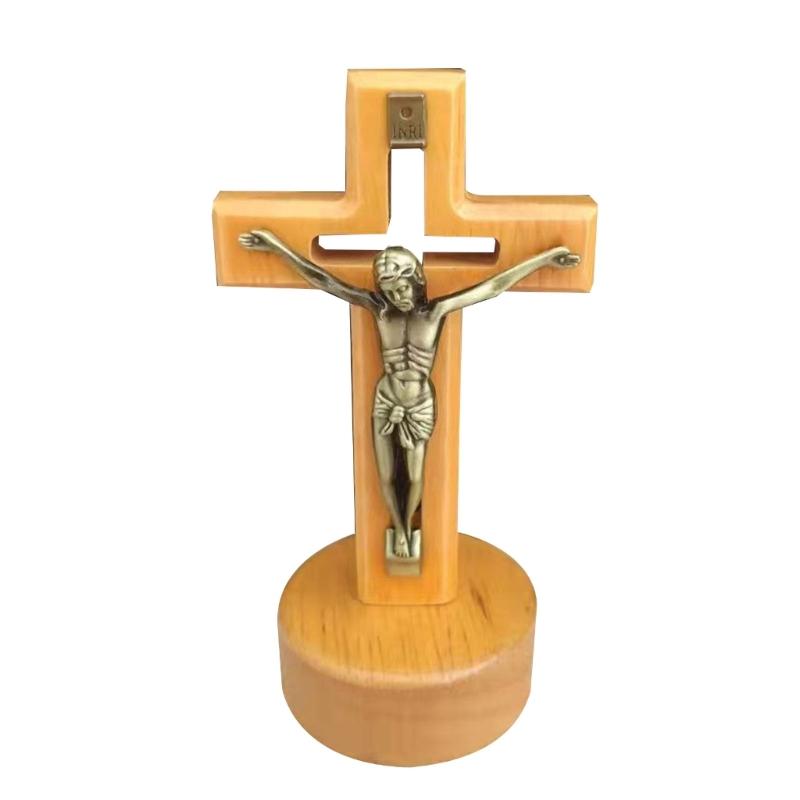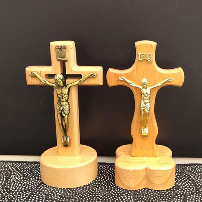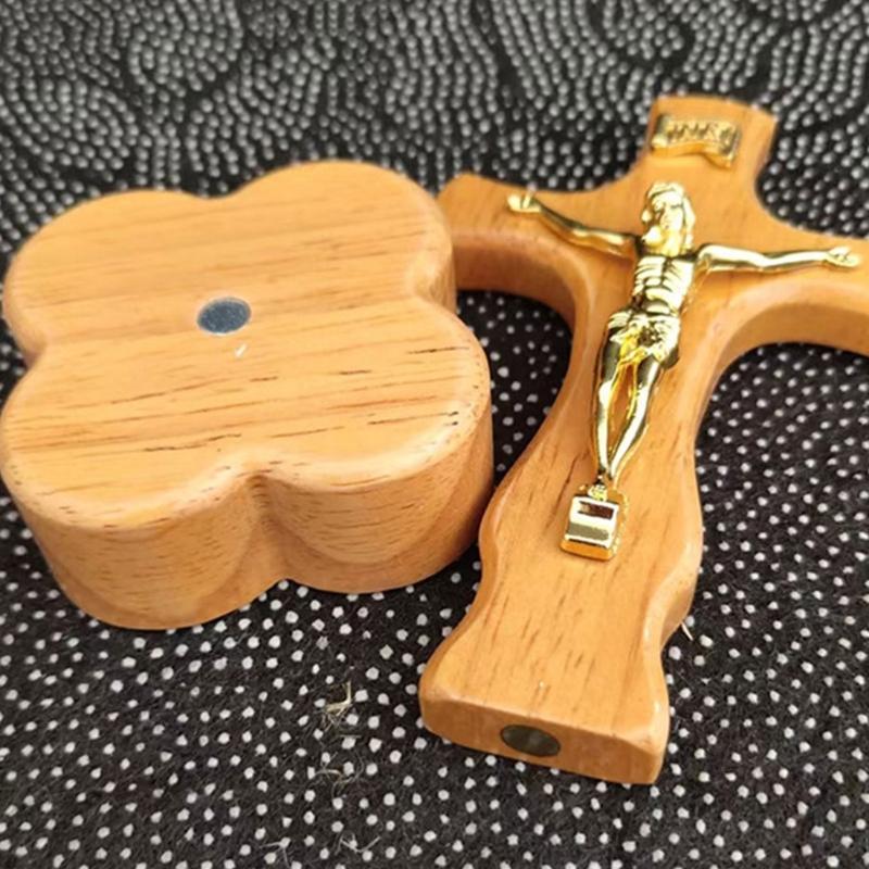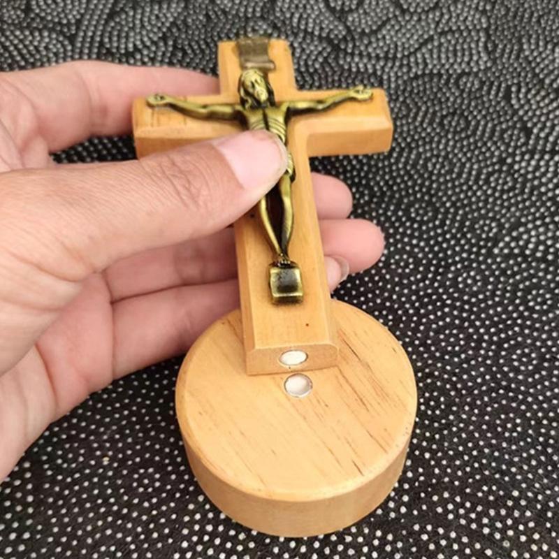 Католический настольный деревянный крест с магнитной подставкой Распятие Крест Скульптура Религиозный христианский подарок Церковь Украшения для дома